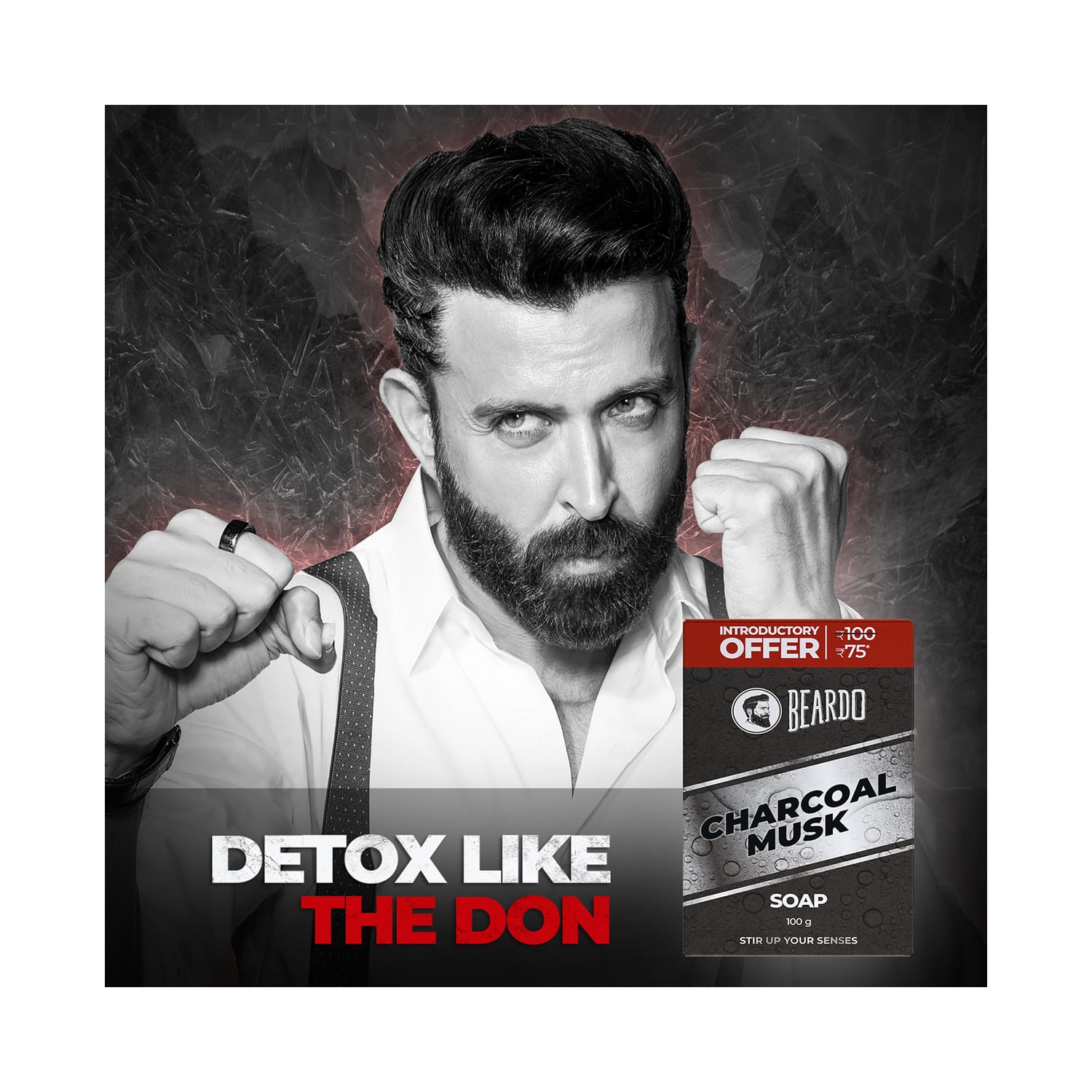 Give your skin a refreshing cleanse every morning with the Beardo Charcoal Musk Soap For Men (100g). This hydrating soap is formulated with charcoal to detoxify and deeply cleanse the skin and aloe vera to keep it moisturized. Also, this Beardo bathing soap absorbs dirt and pollution, reduces excess oil production, and eliminates dead skin cells to rejuvenate the skin.