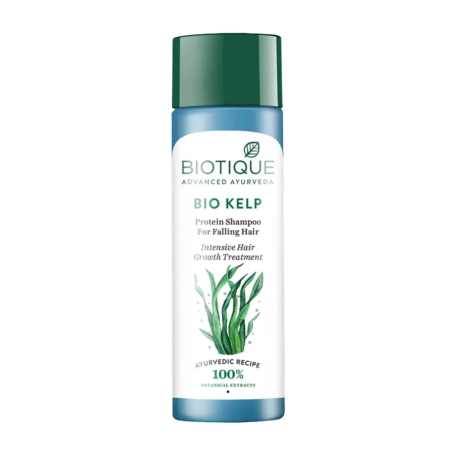 Improve the health of your hair with the Biotique Bio Kelp Protein Shampoo for Falling Hair - (190ml). It has a nourishing formula blended with skin-friendly ingredients for cleansing and invigorating the scalp. In addition, the Biotique hair shampoo promotes new growth and adds a healthier shine to your hair.Key Features & Benefits:Enriched with the likes of kelp, neem, and bhringraj to strengthen the hair strandsNourishing hair shampoo keeps the hair shining for a long timeHair shampoo cleanses and invigorates the hair efficientlyVegan, cruelty-free, and dermatologically tested hair shampoo for safe useKey Ingredients:Kelp: Gives strength to the hairNeem: Invigorates the hair scalpBhringraj: Helps in keeping the hair shine intactHow to Use:Apply the hair shampoo generously to your wet hair. Create rich lather through a gentle massage, then rinse the hair shampoo thoroughly with normal water.All Ingredients:Neem Bark, Tesu Flower, Bhringraj Plant, Daruhaldi Root, Ritha Fruit, Sajjikshar, Purified Water Q.S.About the Brand:Founded in 1992 by Vinita Jain, Biotique blends modern Swiss biotechnology and the 5000-year-old wisdom of Ayurveda to create the ultimate organic skincare and makeup products for Indians. The brand has a team of qualified ayurvedic doctors, scientists, and Swiss cosmetologists to produce cruelty-free products that treat and preserve health, beauty, and well-being. Each and every product of Biotique is 100% pure, organic, and dermatologically tested to ensure responsible, effective beauty treatment for every customer.