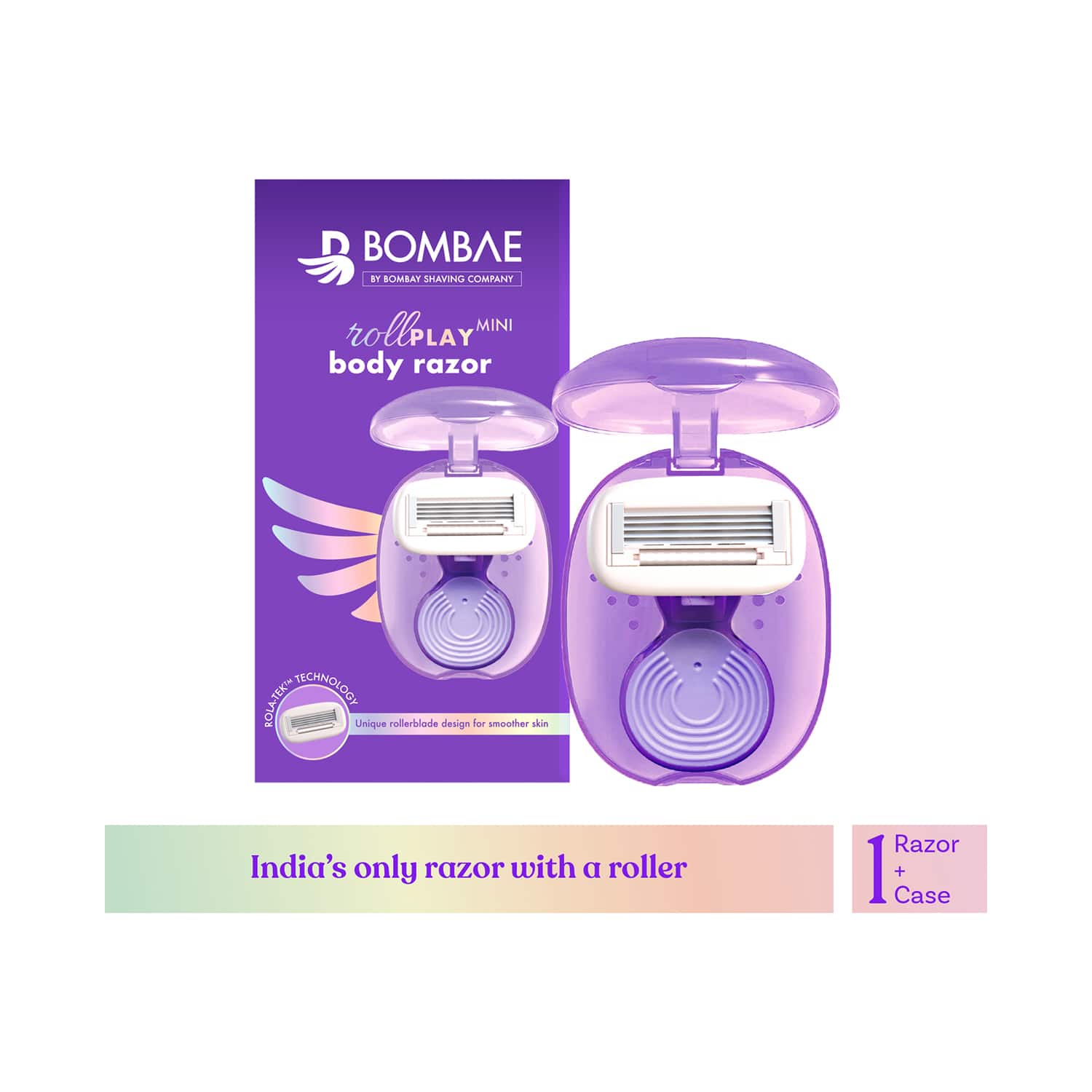 Bombae Rollplay Mini Body Razor With Roller Compact Case - Purple, White