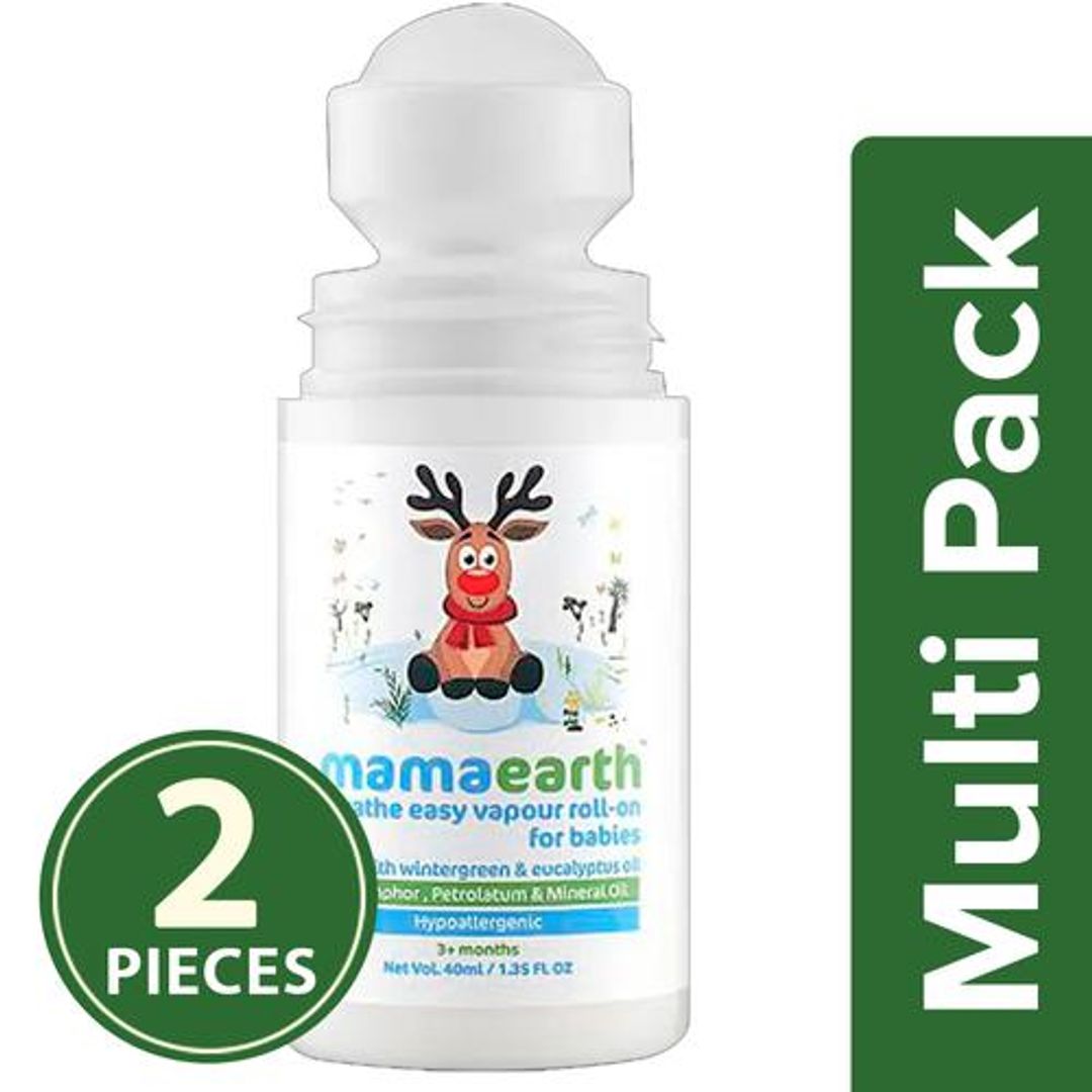 Mamaearth's Madesafe certified breathe easy vapour roll-on is for babies is a natural blend of aromatherapy essential oils like eucalyptus, tulsi and wintergreen that soothes and provides relief from cold, cough and nasal congestion. Lavender oil in the breathe-easy vapour roll on aids restful sleep in babies. It comes in a roll on bottle that is easy to use and apply.