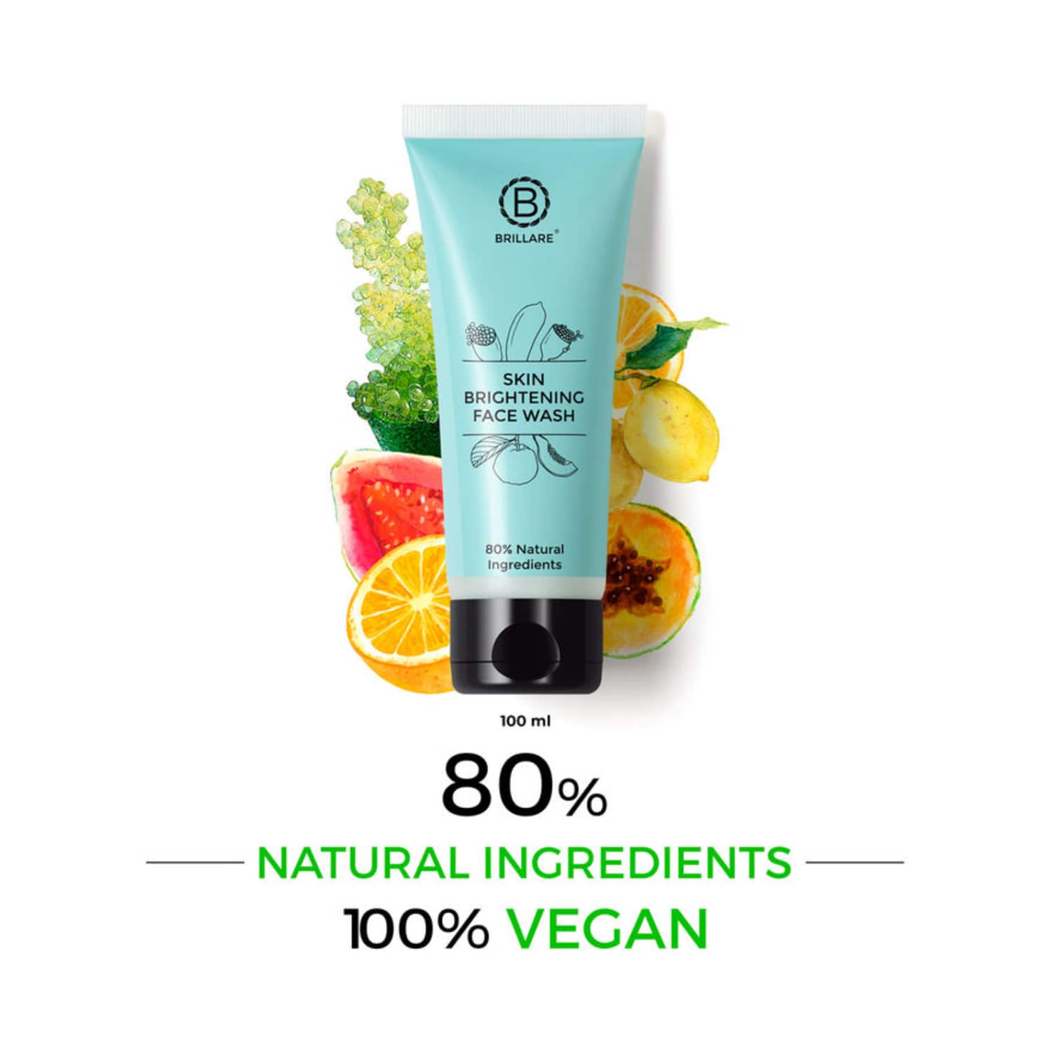 Get clear, glowing skin with the Brillare Skin Brightening Face Wash For Reducing Pigmentation (115 gm). This exfoliating face wash reduces dark spots to lighten the skin tone. Plus, the face cleanser deeply cleans and gives a fresh, healthy complexion. Key Features & Benefits:Face wash contains natural ingredients like lime cavier and papaya to exfoliate dead skin cells, lighten the skin tone and eliminate dark spotsContains multifruit extract to exfoliate skin and provide extra freshness and hydrationDeep cleanses skin to reduce dead skin cellsMinimises unwanted tanning, controls melanin and offers a fresh, radiant glow100% vegan product provides natural nutrition and causes no side effectsFree from harmful chemicals for gentle applicationKey Ingredients:Lime cavier and papaya: Exfoliate dead skin cells, lighten the skin tone and eliminate dark spotsMultifruit extract: Exfoliates skin and provide extra freshness and hydrationHow to Use:Apply face wash on wet face with your hand, massage gently to produce foam and rinse well.All Ingredients:Aqua, Sodium Lauryl Ether Sulfate, Cocoamidopropyl Betaine, Acrylates Crosspolymer-4, Vaccinium Myrtillus Fruit/Leaf Extract, Saccharum Officinarum (Sugar Cane) Extract, Citrus Aurantium Dulcis (Orange) Fruit ExtractAbout the Brand:Brillare was founded in the year 2009. Since then, it has been offering a wide range of personal care products that cater to the need of thousands of customers. The brand's motto has always been to formulate natural and vegan products for safe usage. Their chemical-free skin and hair care products are formulated to suit all skin types for solving the hair and skin problems of every consumer.