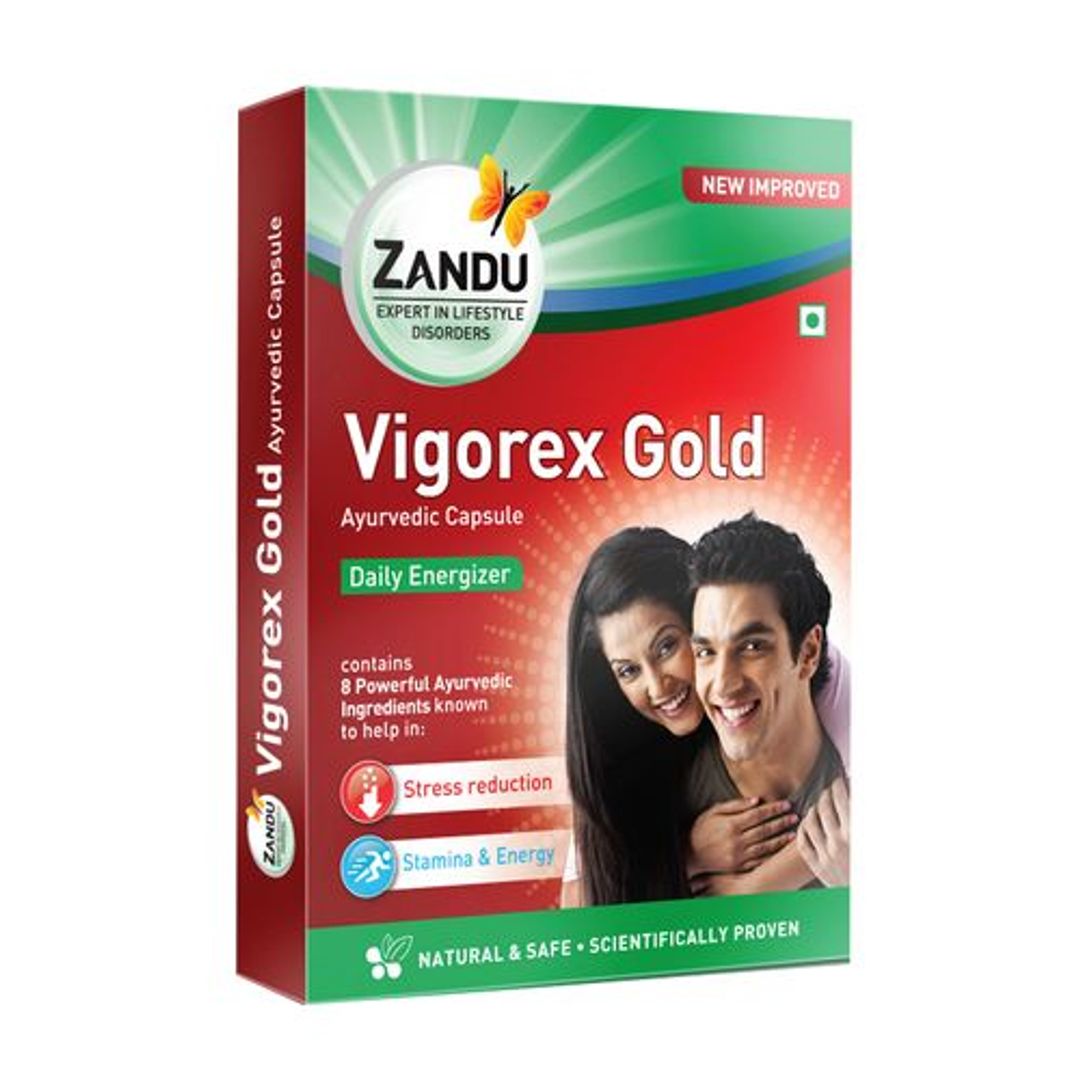 Zandu Vigorex Gold is a unique Ayurvedic revitalizer fortified with eight powerful Ayurvedic minerals and herbs, including Shilajit, Safed Musli and Ashwagandha. It helps relieve stress, improve stamina and boost energy and thereby helps you to enjoy your married life.