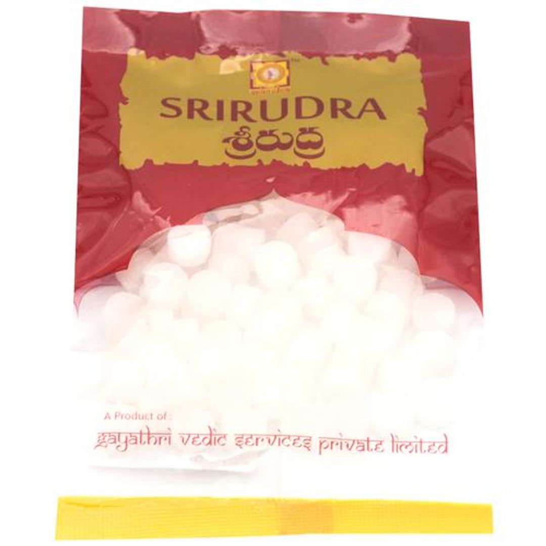 The Sri Rudra Camphor purifies the environment and comes in a bigger size to avoid burning of the hand while lighting. An integral part of poojas, camphors burning light is considered as Lord Shivas flame of consciousness. The product also acts as a room freshener and is believed to drive away bad energy.