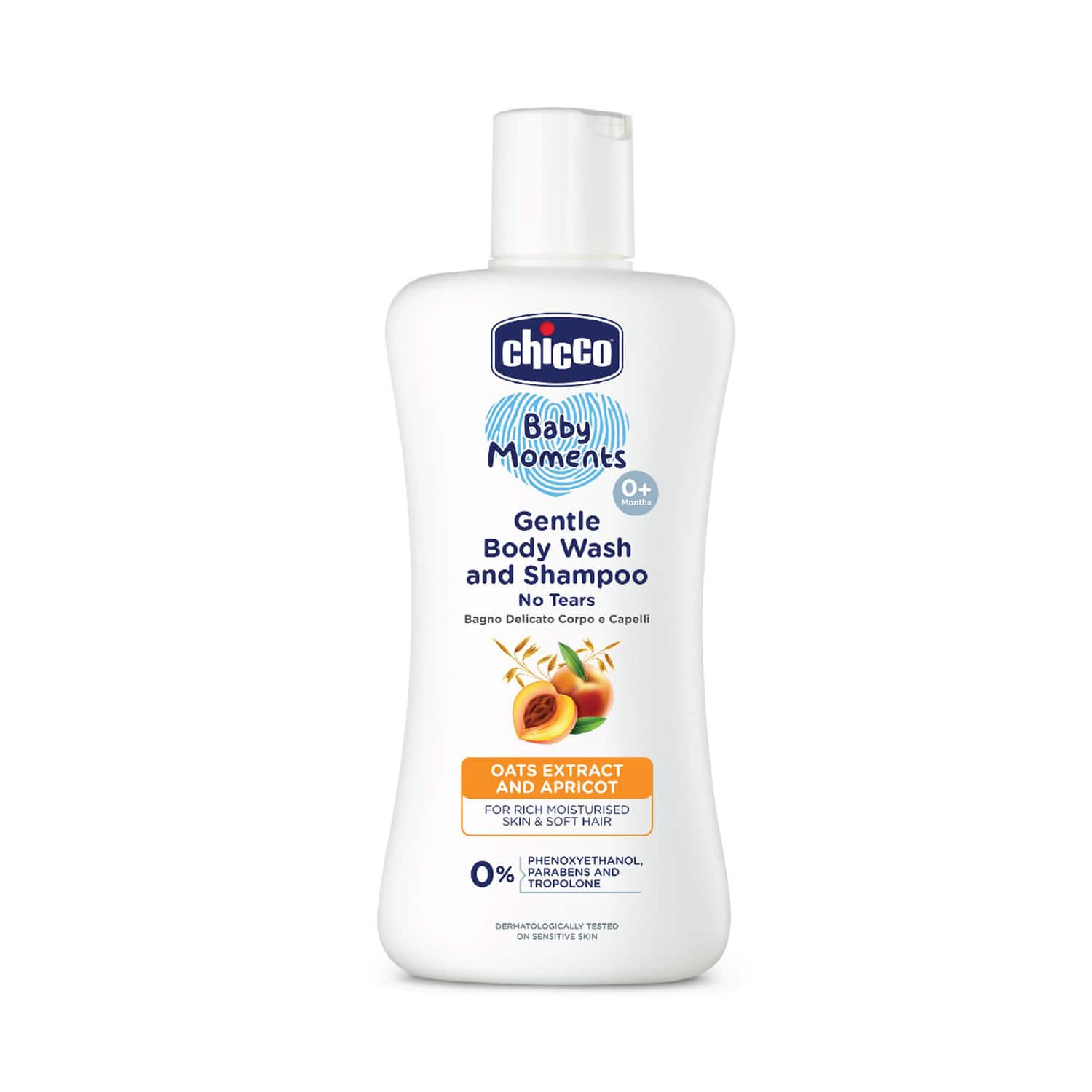 Meet your little one's perfect bath-time companion: The Chicco Baby Moments Gentle Bodywash and Shampoo (200 ml). Infused with the nourishing power of oats, it acts as a natural cleanser to provide essential vitamins, leaving your baby's hair soft and smooth. The hydrating benefits of apricots ensure their skin stays moisturized and supple after every bath. This 2-in-1 cleanser features an advanced, phenoxyethanol-free composition, significantly reducing the risk of skin irritation and allergies for sensitive skin. Its no-tears formula cares for your child's delicate eyes, making bath time a soothing experience.Key Features & Benefits:2-in-1 body wash plus shampoo for gentle bathing sessionEnriched with the goodness of oats to deliver essential vitamins for soft baby hairInfused with apricots to provide a hydrating boost, ensuring baby's skin remains moisturized post-bathFormulated with no-tears formula, promising soothing and tear-free bathing experienceDermatologically tested and phenoxyethanol-free, suitable for even the most sensitive skinMade of vegetarian origin ingredients and free from parabens, tropolone, mineral oil, SLS, SLES, alcohol, dyes with no added EDTA and phthalateKey Ingredients:Oats extract: Cleanses and nourishes baby's hairApricot: Keeps the baby's delicate skin soft and hydratedAll Ingredients:Oats & ApricotsHow to Use:Gently lather the body wash and shampoo onto your baby's wet skin and hair, then rinse thoroughly with warm water for a soothing and cleansing bath experience. For external use only.About the Brand:Established in 1958 in Como, Italy, Chicco is an esteemed Italian brand celebrated as one of the world's leading and most reliable baby care brands. With a presence in over 120 countries, Chicco boasts over 60 years of expertise in providing an extensive array of baby products. From nursing essentials and baby toiletries to toys, travel gear like strollers and car safety seats, and fashionable clothing options, Chicco offers a comprehensive range to meet the needs of parents worldwide.