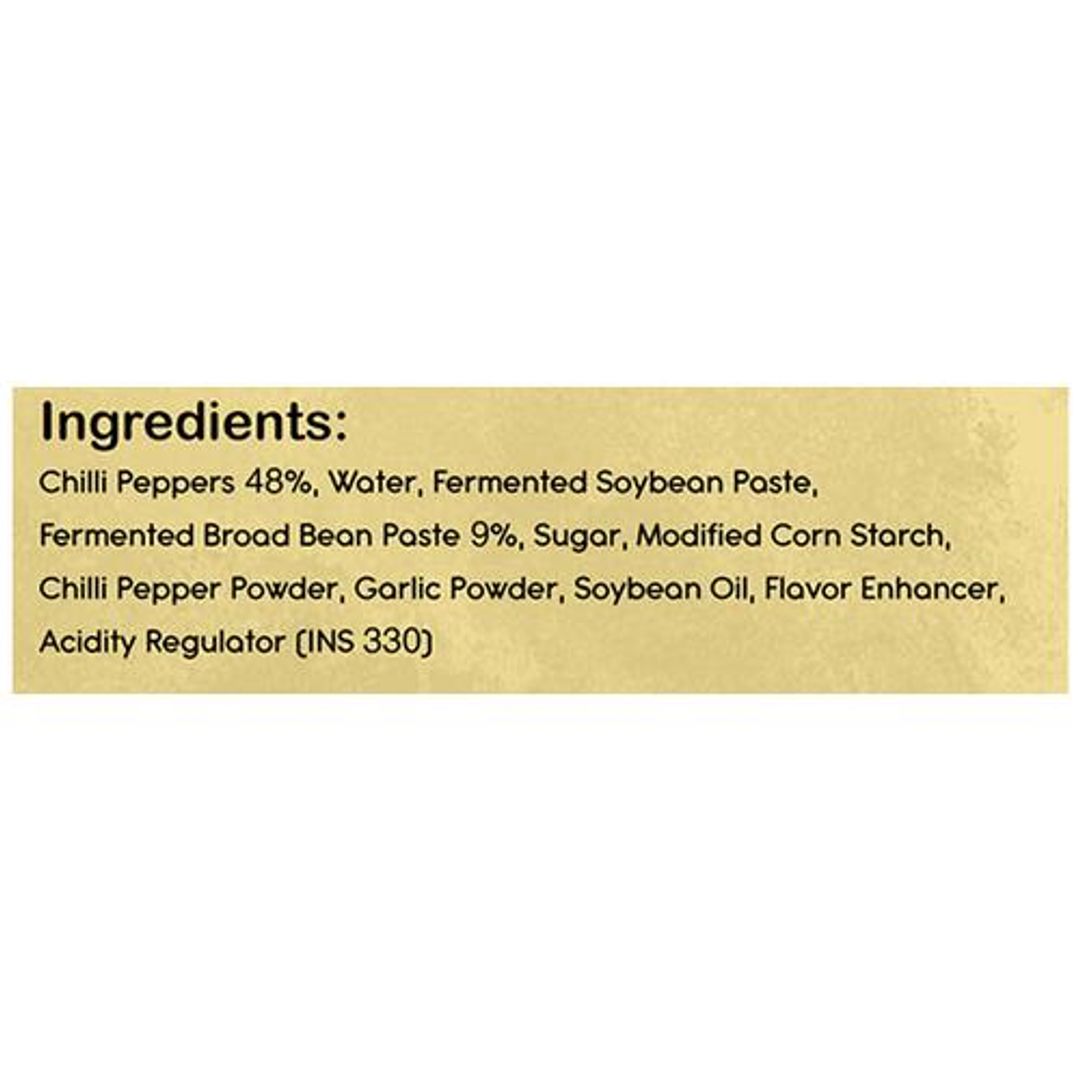 Chilli Peppers 48%, Water, Fermented Soybean Paste, Fermented Broad Bean Paste 9%, Sugar, Modified Corn Starch, Chilli Pepper Powder, Garlic Powder, Soybean Oil, Flavour Enhancer, Acidity Regulator (INS 330)
