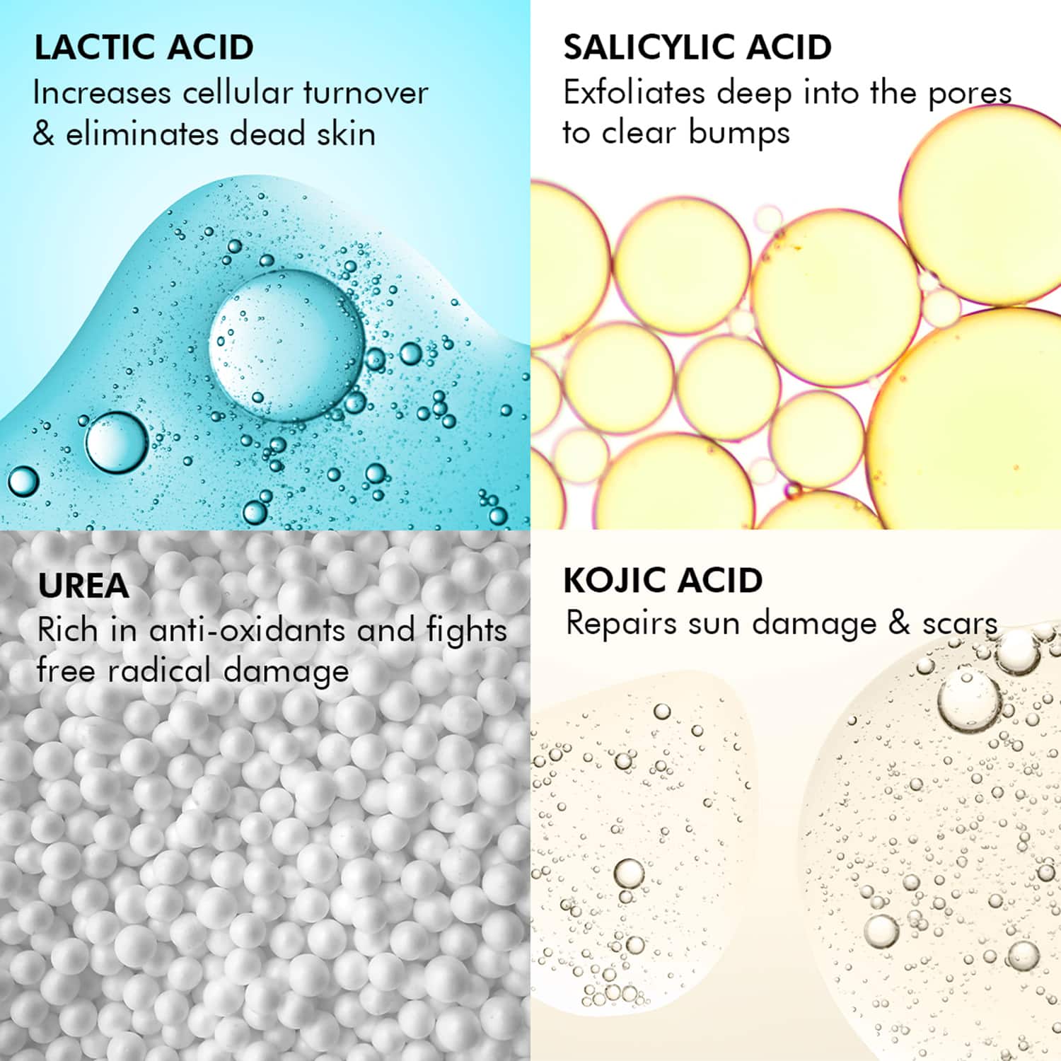 What it is?An exfoliating body treatment cream with a rich velvety texture leaves skin feeling smooth & soft. Absorbs quickly with a non greasy feel. Armed with AHAs & BHAs.How does it work?Salicylic Acid & Lactic Acid help exfoliate, synthetically formulated Urea allows deep penetration of actives in Bumps Escape. It also keeps skin moisturised while promoting cellular growth. Reduces skin bumps in a jiffy, dedicated use cures strawberry skin or chicken skin. The versatile formulation delivers benefits of an exfoliant & dermabrasion in one. Lactic acid and salicylic acid buff away dead skin cells and decongests skin pores. Suitable to treat Keratosis Pilaris (KP) prone skinKey Features & BenefitsTargets stubborn bumps, uneven skin tones and eliminate dead skin.Increases cellular turnover and imroves scaly skin.Exfoliates deep into pores to clear bumpsKey Ingredients Lactic AcidSalicylic AcidUREAAll Ingredients:Purified Water, Lactic Acid, Urea, Glycerin, Glyceryl Stearate Citrate, Sodium Hydroxide, C12 15 Alkyl Benzoate, Ammonium Acryloyldimethyltaurate/Carboxyethyl Acrylate Crosspolymer, Kojic Acid Dipalmitate, Salicylic Acid, Silica, Caprylic/Capric Triglyceride, Cetyl Alcohol, Glyceryl Monostearate, Isoamyl Laurate, Aluminum Starch Octenylsuccinate, Cetearyl Alcohol, Cocos Nucifera (Coconut) Oil, Isopropyl Palmitate, Propanediol, Sorbitan Olivate, Theobroma Cacao (Cocoa) Seed Butter, Phenoxyethanol , Alpha Arbutin, Butyrospermum Parkii (Shea) Butter, Dicaprylyl Carbonate, Heptyl Undecylenate, Olea Europaea (Olive) Oil, Panthenol, Prunus Amygdalus Dulcis (Sweet Almond) Oil, CI 20285, Methylsulfonylmethane, Niacinamide, Fragrance, Xanthan Gum, Chamomilla Recutita (Chamomile) Extract, Emblica Officinalis (Amla) Extract, Ethylhexylglycerin, Glycyrrhiza Glabra (Licorice) Root Extract, Melia Azadirachta (Neem) Extract, Simmondsia Chinensis (Jojoba) Seed Oil, Sodium Gluconate, Sodium Stearoyl Glutamate, Tocopheryl Acetate, Honey, Ocimum Sanctum (Tulsi) Leaf Extract, CI 12085, CI 19140.How to Use:Apply to areas of concern, massaging into skin. Use 2-3 times per week or more often if desired. Use sunscreen daily.About the Brand:By choosing Conscious Chemist, you choose products that are safe, and effective. How? Because, while we understand the power of nature, we engage with it intelligently. We trust the natural, but we give you what is clean. We have created a balance, by using scientifically balanced combinations of ingredients that are bereft of toxins, and are completely safe for you, and for this planet."Check out more Conscious Chemist Body Scrubs & Exfoliants options here, or browse through tokocart's full range of Body Scrubs & Exfoliants from top global brands.You can also explore other products from the world of Conscious Chemist here on tokocart.