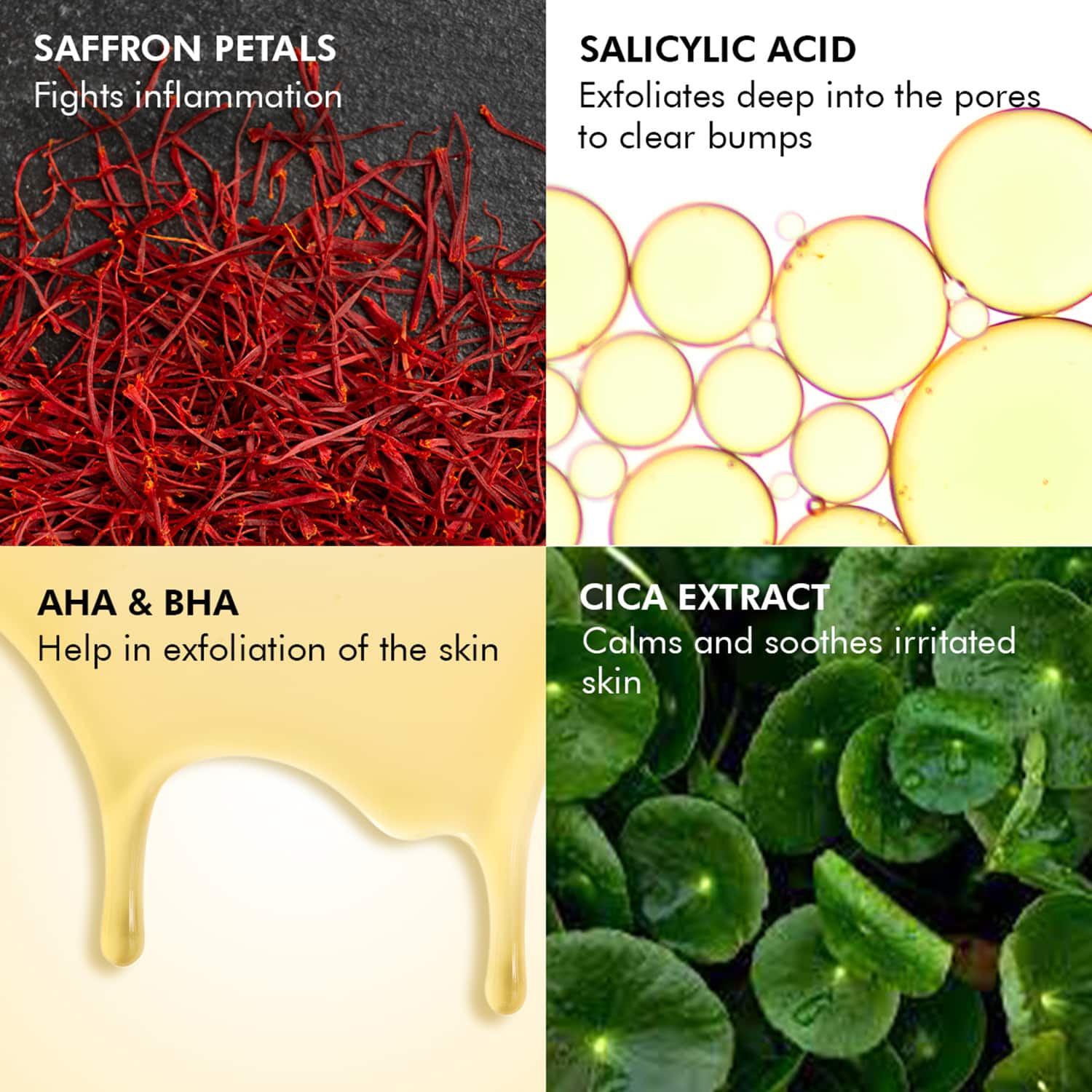 Conscious chemist oil control face mask resurface and instantly brighten your complexion with saffron petals and AHA blend. This elegantly formulated face mask uses saffron strands to promote a brighter, more clean skin.Key Features & BenefitsImproves skin texture gently exfoliateRemoves dead skin cells and clears congested poresBotanical powerhouse to fight inflammationKey Ingredients AHA BlendSalicylic AcidSaffron PetalsAll Ingredients:Demineralised Water, MEL (Honey), Glycerine, Aloe Barbadensis leaf extract, Xanthan Gum, Salicylic acid, Glycolic acid, Lactic Acid, Nymphaea Caerulea extract (Lilly Lotus extract), carbomer, Saffron petals, TEA, Iscaguard PEG, EDTA, Sodium BenzoateHow to Use:Apply a thin, even layer to clean, dry skin and rinse with cool water after 8-10 minutes. Do not leave on for more than 10 minutes, and avoid using other acid-based products and retinoids for 12 hours before and after each use. Use 2-3 times a week.