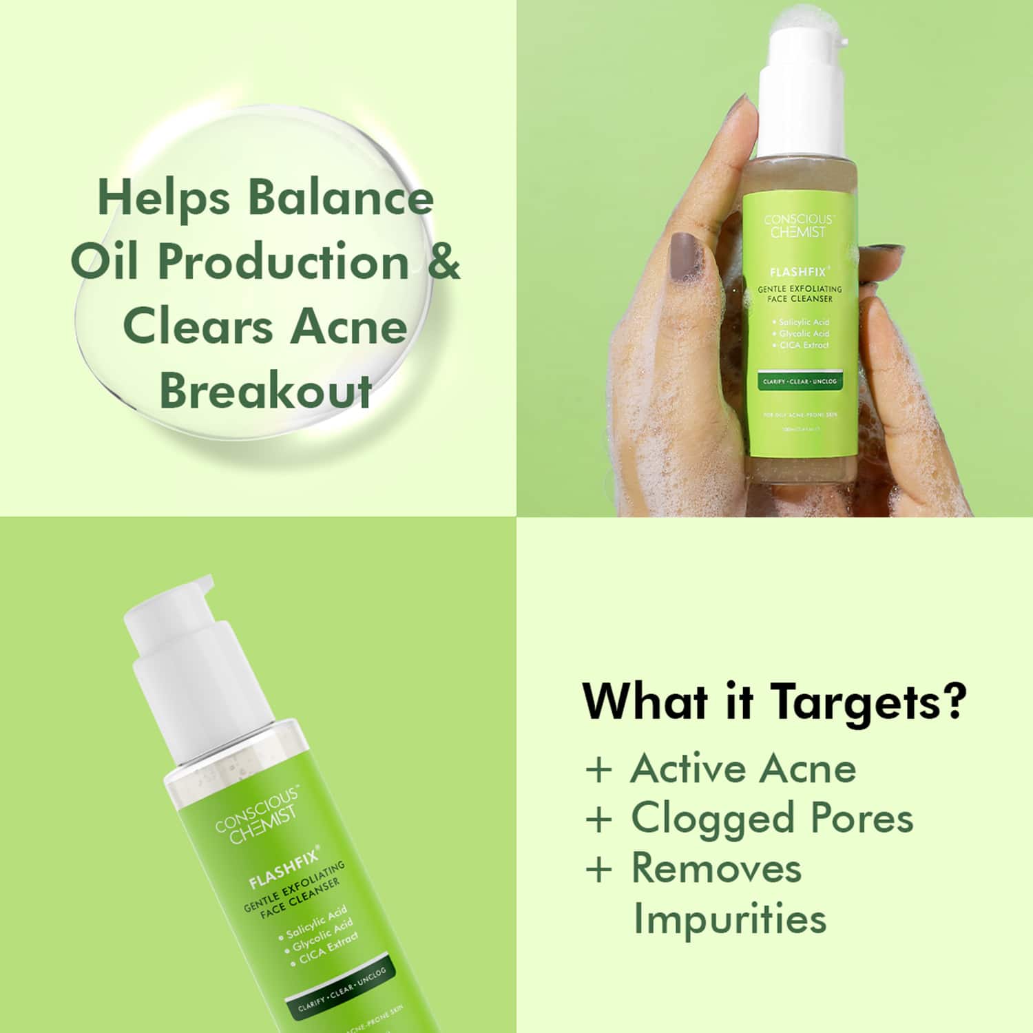 Flashfix Cleanser is carefully formulated to reduce breakouts and prevent future ones, it's perfect for easily congested skin types. Gently removing pore-clogging debris, impurities and excess oil, this refreshing gel cleanser lifts away daily build-up to leave your complexion feeling clean and purified.