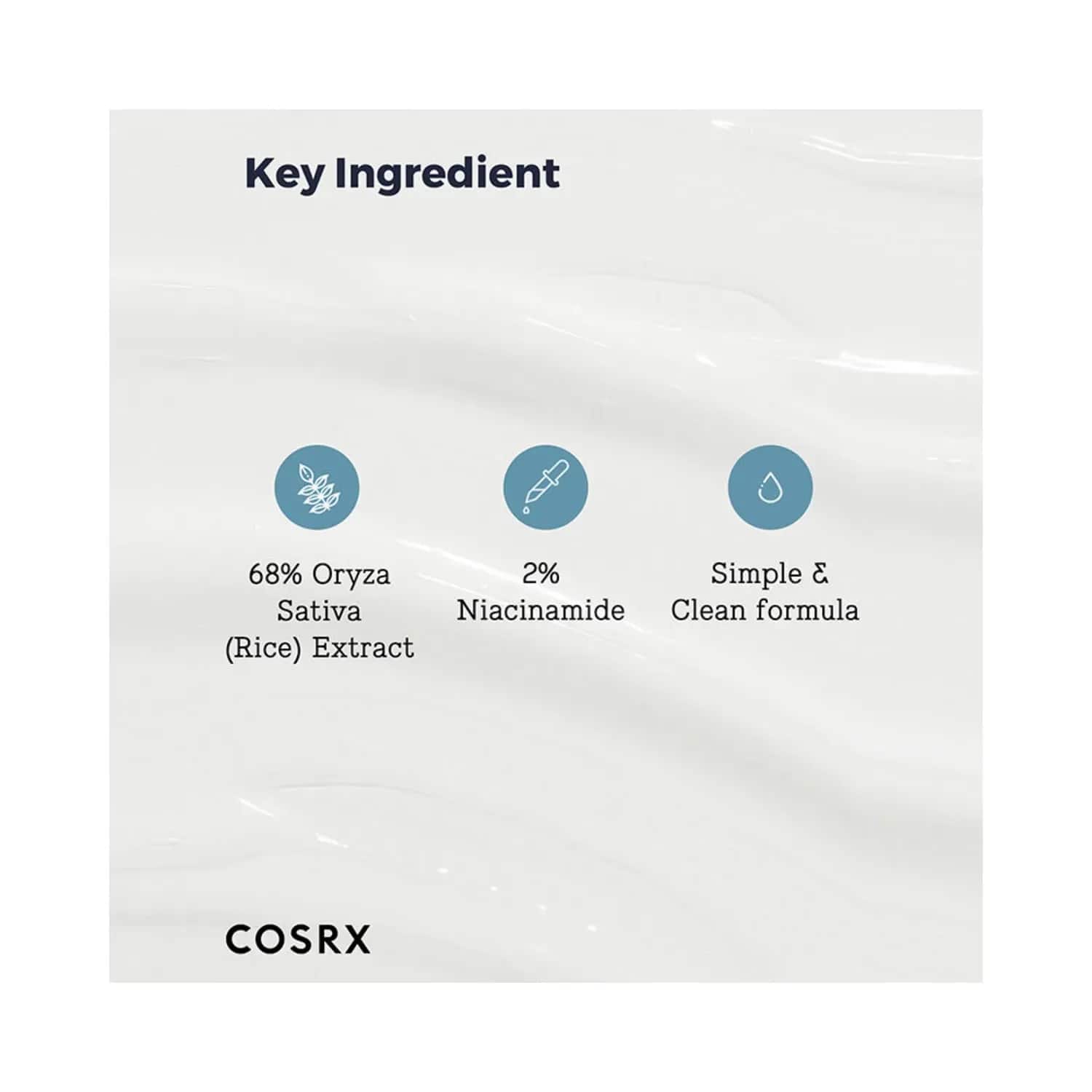 Indulge your skin in overnight luxury with the COSRX Ultimate Nourishing Rice Overnight Spa Mask (60ml). Enriched with over 68% rice extract, this luxurious 3-in-1 skincare essential provides deep hydration and nourishment while you sleep, revealing a revitalized complexion by morning. With 2% niacinamide, it minimizes pores and fine lines, enhancing skin texture and tone. Perfect for those craving intensive moisture and radiant skin, this cruelty-free sleeping mask works tirelessly overnight to refine, brighten, and rejuvenate your skin, ensuring you wake up refreshed and glowing every day.Key Features & Benefits:3-in-1 overnight spa mask enriched with 68% rice extract for deep hydrationContains 2% niacinamide to reduce pores and fine linesRefines and brightens skin tone for a radiant complexionCruelty-free formulation for guilt-free skincareKey Ingredients:68.9% Rice extract: Packed with brightening and skin-softening properties2% Niacinamide: Reduces the appearance of pores and helps with sebum regulationAll Ingredients:Oryza Sativa (Rice) Extract, Butylene Glycol, Glycerin, Helianthus Annuus (Sunflower) Seed Oil, Betaine, Niacinamide, Dimethicone, 1,2-Hexanediol, Cetearyl Olivate, Sorbitan Olivate, Elaeis Guineensis (Palm) Oil, Elaeis Guineensis (Palm) Kernel Oil, Hydroxyethyl Acrylate/Sodium Acryloyldimethyl Taurate Copolymer, Cetearyl Alcohol, Ethylhexylglycerin, Arginine, Carbomer, Allantoin, Xanthan GumHow to Use:Begin with freshly cleansed skin to enhance the mask's effectiveness. Apply an even layer of the mask to your face, avoiding the delicate eye area. Allow the mask to dry for the recommended time, typically 10-15 minutes, or until it feels firm and tight. Rinse off the mask with lukewarm water, gently pat your skin dry, and follow with your regular skincare routine.About the Brand:COSRX is a best-selling Korean skincare brand renowned for its effective skincare solutions. Their name reflects their values and is derived from 'Cos (metics)' and 'Rx (medical prescription)'. This award-winning brand has various product lines that address acne, exfoliation, hydration, and more. They approach these aspects with gentle, skin-friendly ingredients, and innovative formulations. All their products are cruelty-free and dermatologist-tested.