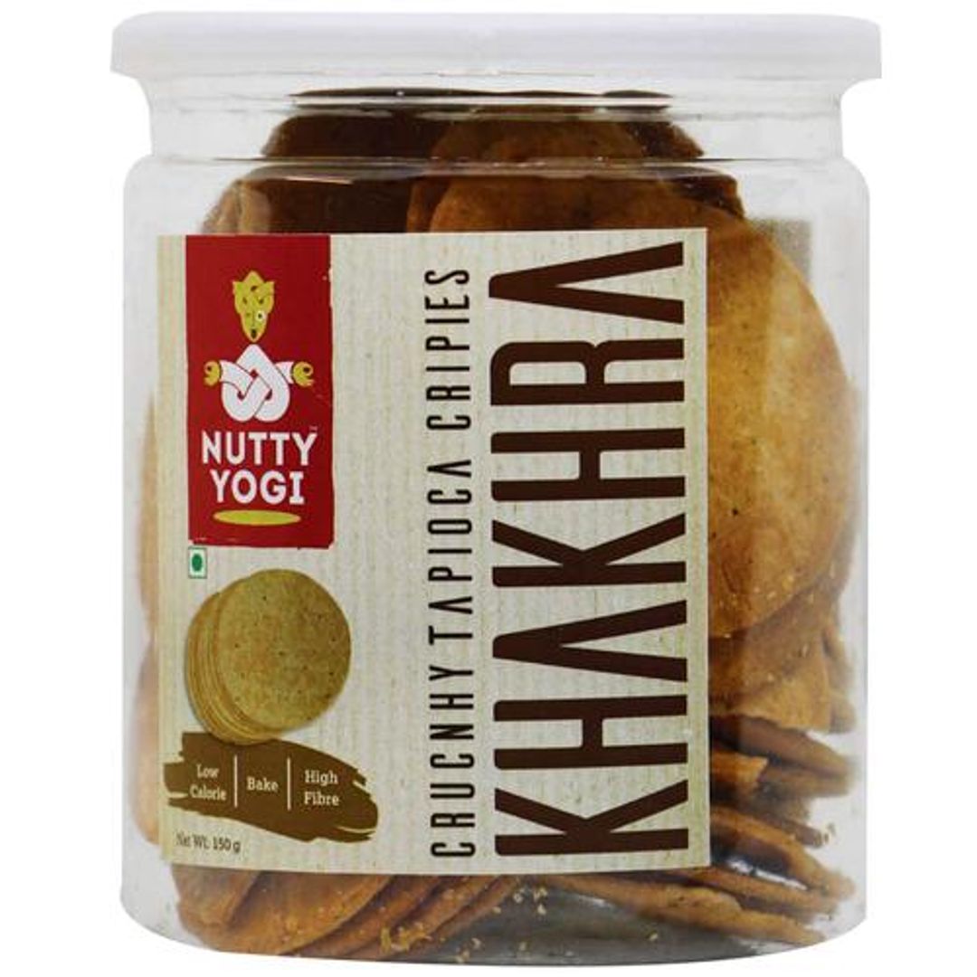 Nutty Yogi Crunchy Tapioca Khakhra Crispies is a thin cracker Gujarati snack. It is made with the finest ingredients, a most common snack. A very basic, a very thinly rolled disc of Sabudana and spices. It is crisp, savoury, and incredibly delicious with the methi masala. These khakhras are admired for their rich taste, crunchiness and purity. Bring you a unique flavour of khakhras.