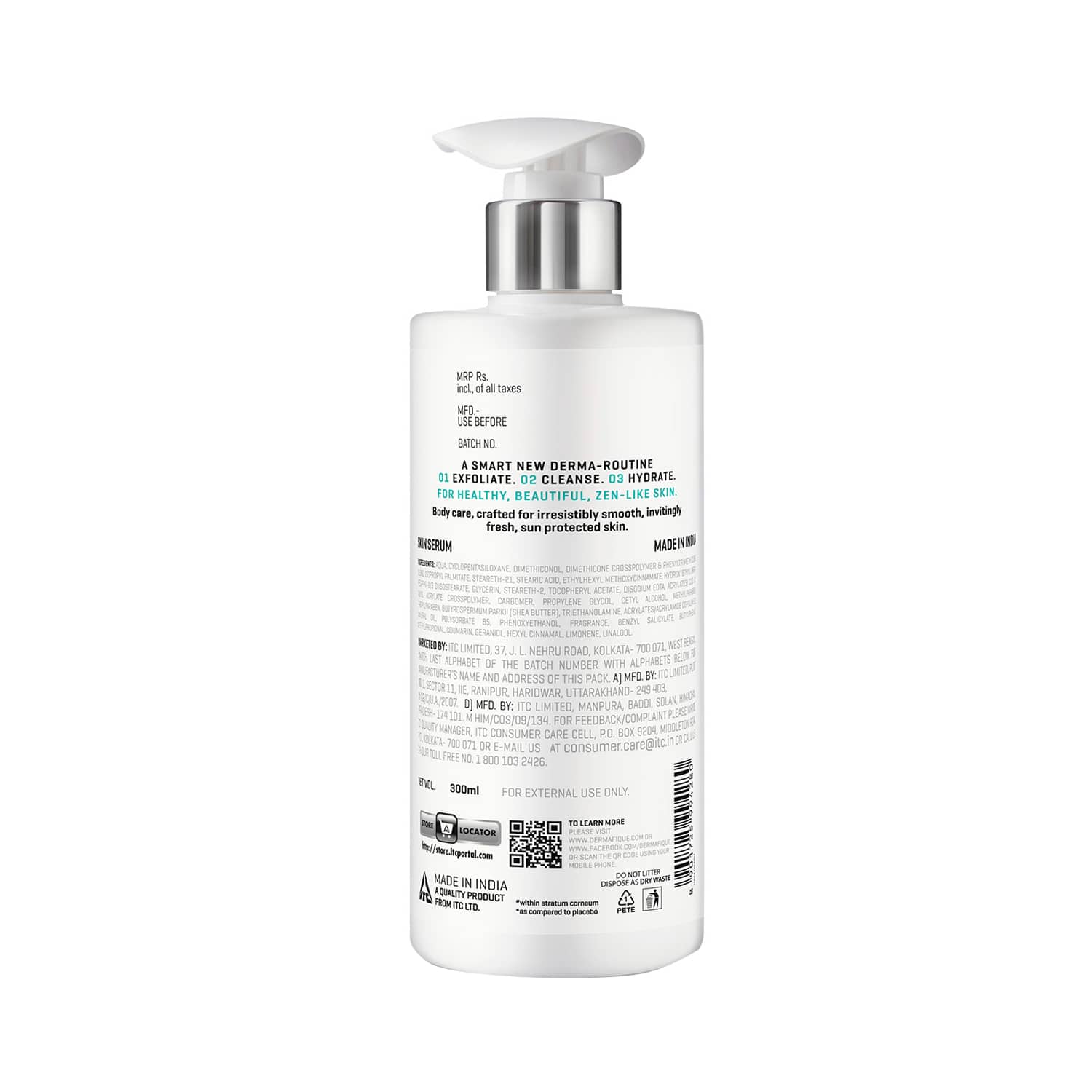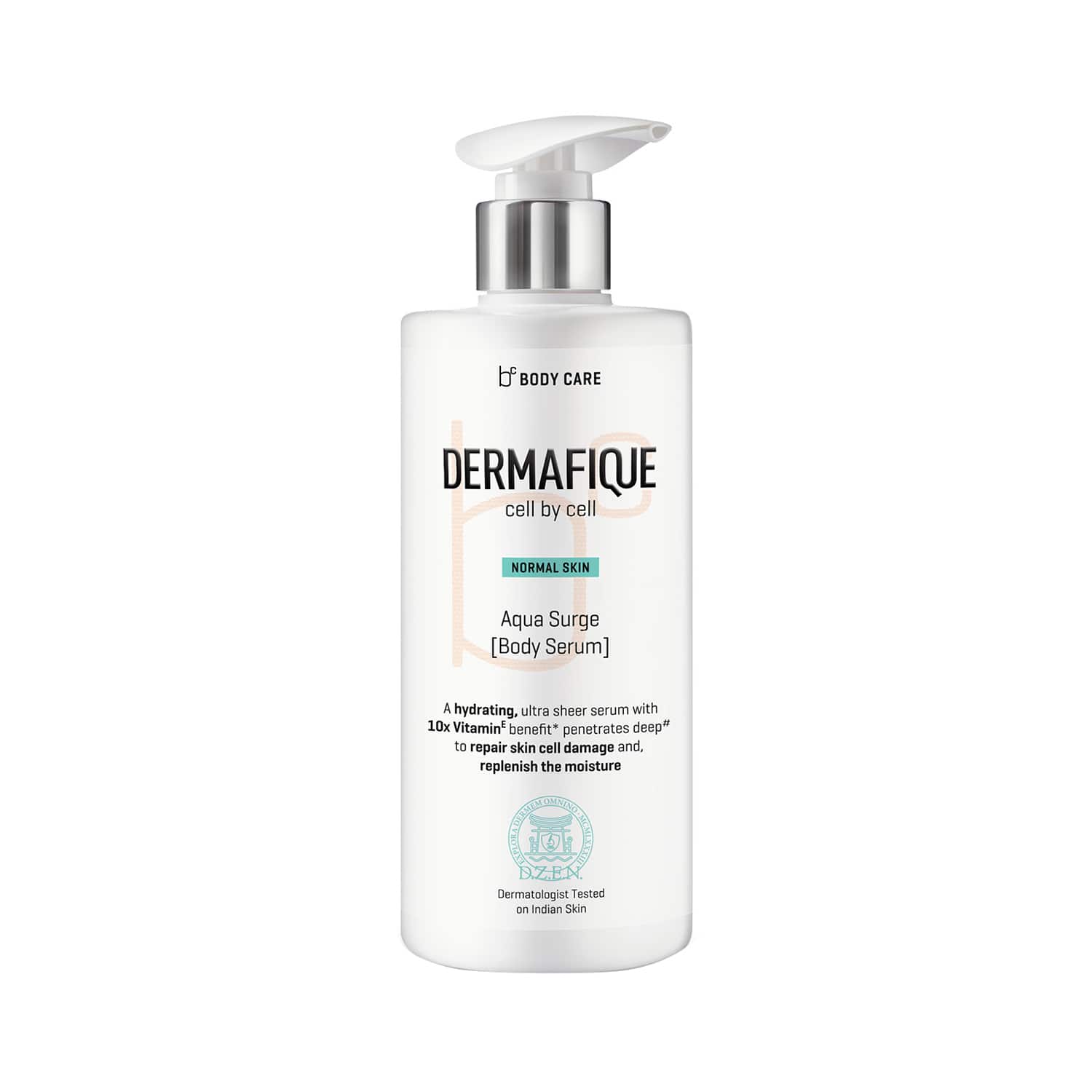 Time to care for your skin with the Dermafique Aquasurge Body Serum (300ml). This vitamin E body serum retains moisture in the skin and prevents collagen synthesis. It is a skin-repairing serum that repairs damaged skin cells. The Dermafique body serum is also a brightening serum that provides a radiant complexion.Key Features & Benefits:Infused with shea butter to nourish the skinPrevents moisture loss to provide soft and smooth skinProvides protection from UV radiations for healthy skinDermatologically tested body serum for safe useKey Ingredients:Shea butter and vitamin E: Moisturize the skinAll Ingredients:Aqua, Cyclopentasiloxane, Dimethiconol, Dimethicone Crosspolymer & Phenyl Trimethicone Blend, Isopropyl Palmitate, Steareth-21, Stearic Acid, Ethylhexyl Methoxycinnamate, Hydroxyethyl Urea, Peg/Ppg-8/3 Diisostearate, Glycerin, Steareth-2, Tocopheryl Acetate, Disodium Edta, Acrylates/ C10-30 Alkyl Acrylate Crosspolymer, Carbomer, Propylene Glycol, Cetyl Alcohol, Methylparaben, Propylparaben, Butyrospermum Parkii (Shea Butter), Triethanolamine, Acrylates/Acrylamide Copolymer, Mineral Oil, Polysorbate 85, Phenoxyethanol, Fragrance, Benzyl Salicylate, Butylphenyl Methylpropional, Coumarin, Geraniol, Hexyl Cinnamal, Limonene, Linalool.How to Use:First, cleanse your skin and pat dry with a soft towel. Then, take a few drops of the body serum on your palm. Next, apply it to your skin and massage it until it's absorbed completely.About the Brand:Dermafique is an integral, intelligent skin care system that combines active ingredients and scientific innovations jointly developed by the expertise of dermatologists and cell biologists. Dermafique works with skin physiology to address skin problems that internal or external factors may cause. Healthy skin is built cell by cell, step by step, using proper skin care methods backed by science and skin-friendly products. This philosophy has led us to create Dermafique, a premium skincare brand specially formulated for Indian skin.Check out more Dermafique Body Lotions & Moisturisers options here, or browse through tokocart's full range of Body Lotions & Moisturisers from top global brands.You can also explore other products from the world of Dermafique here on tokocart.