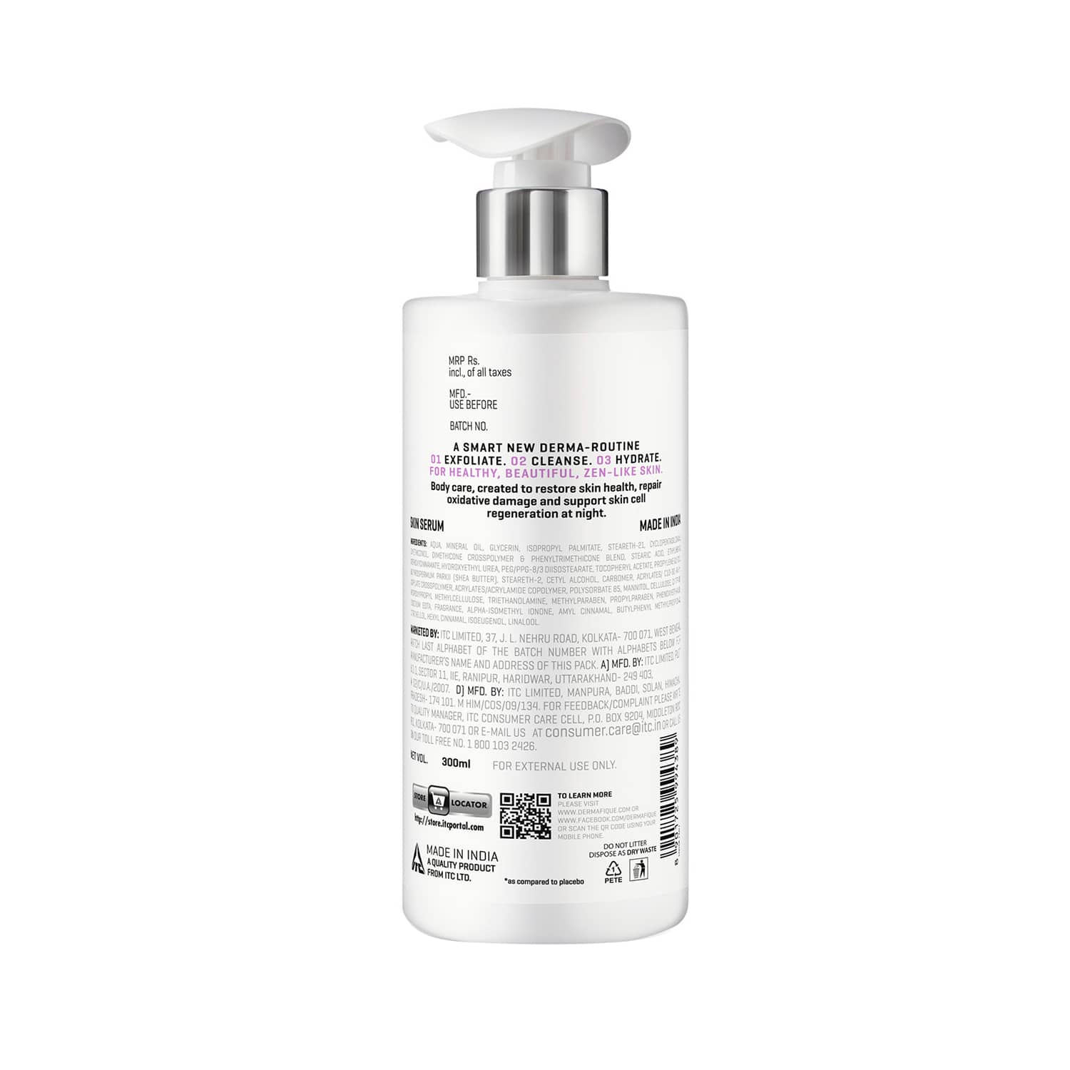 Revive your skin with the Dermafique Night Replenish Body Serum (300ml). This vitamin E body serum locks moisture in the skin to provide intense hydration overnight. It is a skin-repairing serum that repairs oxidative damage and promotes cell regeneration. The Dermafique night body serum is also a nourishing serum that provides healthy skin.Key Features & Benefits:Infused with shea butter to nourish the skinPrevents moisture loss to provide soft and smooth skinRepairs damaged skin cells overnight for healthy skinDermatologically tested night body serum for safe useKey Ingredients:Shea butter and vitamin E: Moisturize the skinAll Ingredients:Aqua, Mineral Oil, Glycerin, Isopropyl Palmitate, Steareth-21, Cyclopentasiloxane, Dimethiconol, Dimethicone Crosspolymer & Phenyl Trimethicone Blend, Stearic Acid, Ethylhexyl Methoxycinnamate, Hydroxyethyl Urea, Peg/Ppg-8/3 Diisostearate, Tocopheryl Acetate, Propylene Glycol, Butyrospermum Parkii (Shea Butter), Steareth-2, Cetyl Alcohol, Carbomer, Acrylates/ C10-30 Alkyl Acrylate Crosspolymer, Acrylates/Acrylamide Copolymer, Polysorbate 85, Mannitol, Cellulose, Ci 77491, Hydroxypropyl Methylcellulose, Triethanolamine, Methylparaben, Propylparaben, Phenoxyethanol, Disodium Edta, Fragrance, Alpha-Isomethyl Ionone, Amyl Cinnamal, Butylphenyl Methylpropional, Citronellol, Hexyl Cinnamal, Isoeugenol, Linalool.How to Use:First, cleanse your skin and pat dry with a soft towel. Then, take a few drops of the body serum on your palm. Next, apply it to your skin and massage it until it's absorbed completely.About the Brand:Dermafique is an integral, intelligent skin care system that combines active ingredients and scientific innovations jointly developed by the expertise of dermatologists and cell biologists. Dermafique works with skin physiology to address skin problems that internal or external factors may cause. Healthy skin is built cell by cell, step by step, using proper skin care methods backed by science and skin-friendly products. This philosophy has led us to create Dermafique, a premium skincare brand specially formulated for Indian skin.Check out more Dermafique Body Lotions & Moisturisers options here, or browse through tokocart's full range of Body Lotions & Moisturisers from top global brands.You can also explore other products from the world of Dermafique here on tokocart.