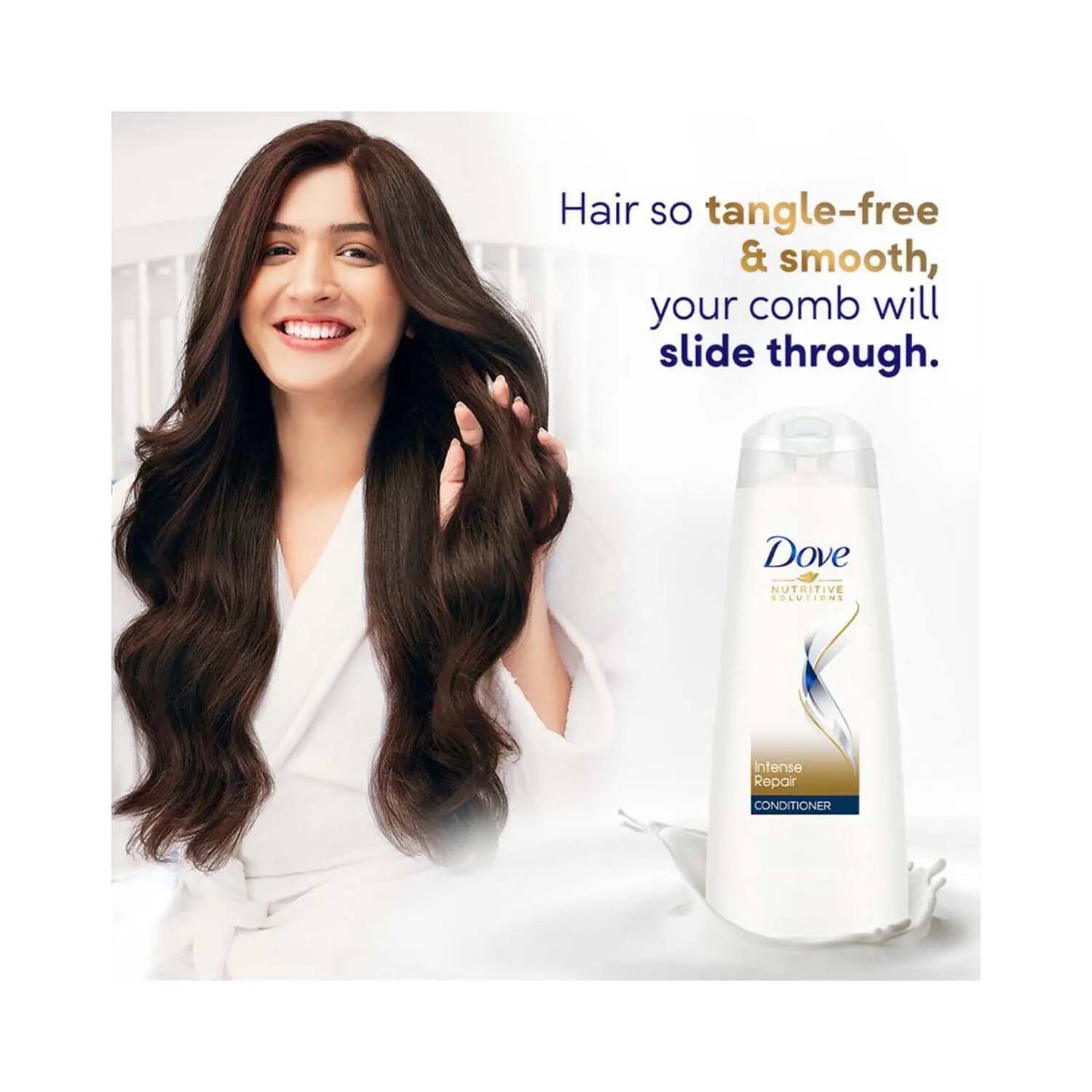 After shampooing, take a small amount of Dove Intensive Repair conditioner between your hands and apply it to the wet hair. Make sure that you cover every strand by combing your hair through your fingers. Leave it for some time and rinse off with water.