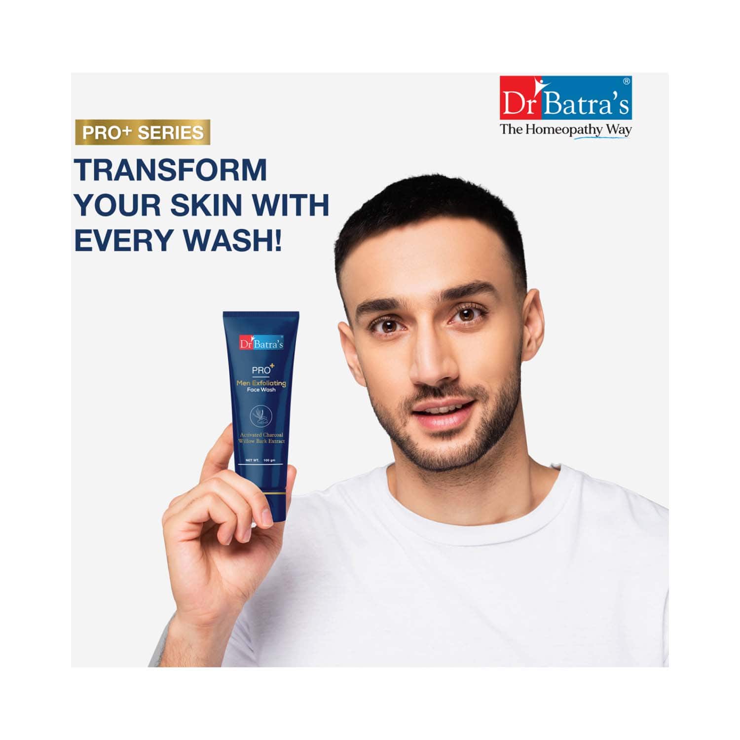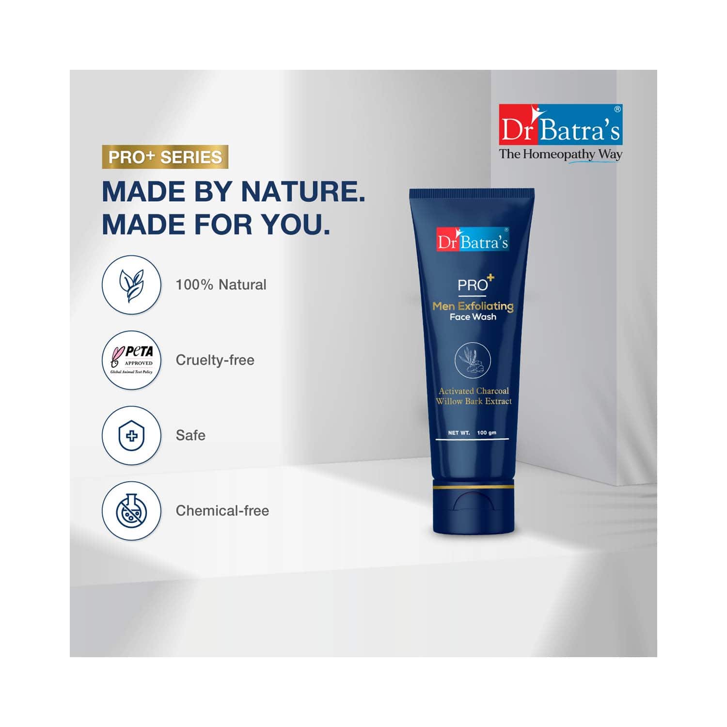 Revitalize your skin with every wash using the Dr Batra's Pro+ Men Exfoliating Face Wash (100g). This facewash is specifically developed for men's tough skin and contains activated charcoal to draw out impurities from deep within the pores for an effective cleanse. Also, this Dr Batra's men's facewash exfoliates the skin to eliminate dead skin cells and pollutants, revealing a smoother and fresher complexion. Plus, this hydrating facewash has willow bark extract to balance the skin's pH level post-cleansing.Key Features & Benefits:Formulated with activated charcoal to cleanse the skin deeplyExfoliates the skin gently for a smoother and fresher complexionAdded willow bark extract balances the skin's pH level100% natural and cruelty-free formula does not contain harsh chemicals to ensure safe useKey Ingredients:Activated charcoal: Deeply cleanses the skinWillow bark extract: Balances the skin's pH levelAll Ingredients:Activated Charcoal, Willow Bark Extract, Biosaccharide Gum-4, Echinacea Purpurea ExtractHow to Use:Take a small amount of the facewash in your palm and apply it to damp skin. With gentle, circular motions, work up a lather and cleanse your skin. Rinse the facewash off with water, then pat your skin dry.About the Brand:Dr Batra's Healthcare was founded by Dr. Mukesh Batra in 1982 in Mumbai. Dr. Batra graduated as a homeopathic doctor at 22, one of the youngest to ever accomplish the same. He began his journey by interning without pay at a local homeopathic clinic while working on his practice from the afternoon onwards, eventually earning some fame by hosting a show on health and exercise on Zee TV. In 2004, Dr. Batra branched out into the retail world with Dr Batra's Products, releasing solutions for various concerns based on his knowledge of homeopathy. What began with a few items in hair, skin, and personal care now addresses a broader range of issues and includes numerous options. All their products boast being dermatologically tested, natural free of harmful chemicals, cruelty-free, and suitable for anyone without any side effects.Check out more Dr Batra's Face Wash options here, or browse through tokocart's full range of Face Wash from top global brands.You can also explore other products from the world of Dr Batra's here on tokocart.