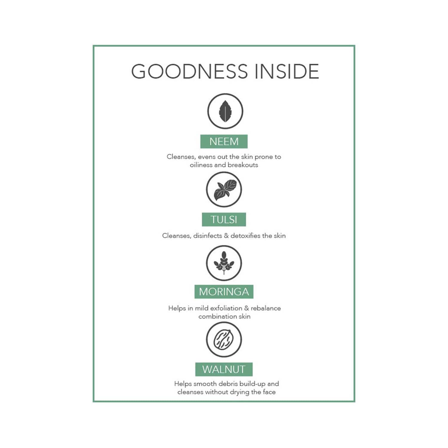 Key Ingredients:Moringa: Adds radianceNeem: Gives an even skin tone, prevents acneTulsi: Detoxifies skin