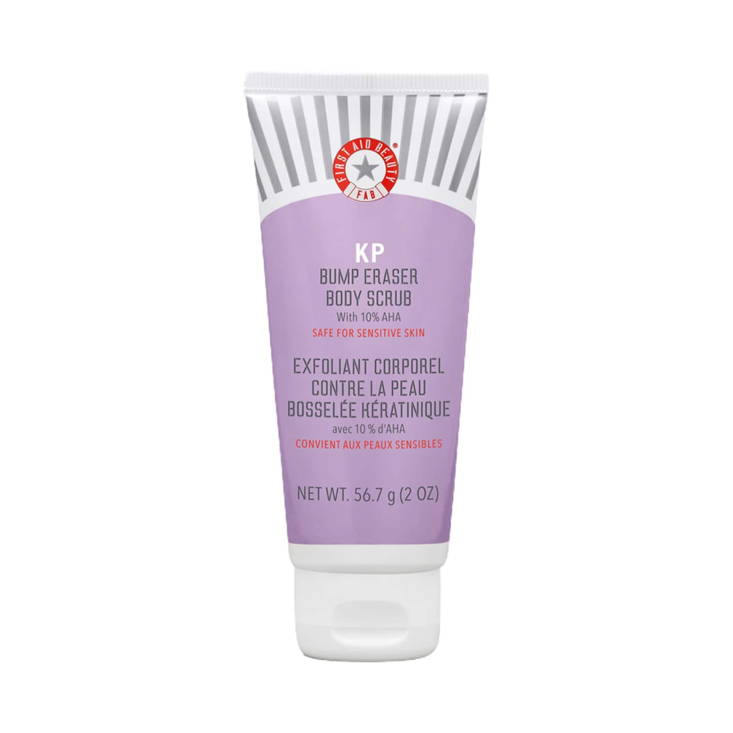 Transform the look and feel of your skin with the First Aid Beauty KP Bump Eraser Body Scrub With 10% AHA (56.7g). This exfoliating body scrub contains glycolic and lactic acids along with pumice to sweep away dry, rough bumps associated with keratosis pilaris, strawberry skin, and booty bumps to reveal healthier-looking and smoother skin. Also, this First Aid Beauty body scrub is a vegan body scrub that is safe for use on sensitive skin.Key Features & Benefits:Formulated with glycolic and lactic acids at a combined level of 10% AHAs to resurface the skin’s top layerContains pumice to physically exfoliate the skinHelps to improve the skin’s texture by removing bumps, roughness, and scaly areasVegan and cruelty-free scrub is formulated without gluten, nut, and soy to ensure safe useKey Ingredients:Pumice buffing beads: Naturally exfoliate the skinGlycolic and lactic acids: Exfoliate the skin and make it brighter and smootherBisabolol: Soothes and calms the skinVitamin E: Conditions and soothes the skinAll Ingredients:Pumice, Water/Aqua/Eau, Glycolic Acid, Sodium Cocoyl Isethionate, Lactic Acid, Dimethicone, Stearic Acid, Cetearyl Alcohol, Sodium Hydroxide, Palmitic Acid, Glycerin, C12-15 Alkyl Benzoate, Sorbitol, Colloidal Oatmeal, Tocopherol, Chrysanthemum Parthenium (Feverfew) Extract, Camellia Sinensis Leaf Extract, Glycyrrhiza Glabra (Licorice) Root Extract, Salix Nigra (Willow) Bark Extract, Bisabolol, Hydrogenated Coconut Acid, Xanthan Gum, Steareth-20, Steareth-21, Myristic Acid, Sodium Isethionate, Phenoxyethanol, Potassium Sorbate, Sodium Benzoate, Leuconostoc/Radish Root Ferment Filtrate, EdtaHow to Use:While bathing, take the required amount of the body scrub and rub it in a circular motion on wet skin. Rinse with lukewarm water. Towel dry and follow up with a body lotion. Store it in a cool, dry place away from heat and direct sunlight.About the Brand:First Aid Beauty was founded by Lilli Gordon in 2008 with the goal of maximizing skin health with clean skincare. Although it was established in Newton, Massachusetts, First Aid Beauty is on a mission to revolutionize skincare for people everywhere, regardless of their skin type. By providing everyday essentials that combat various skin problems, the brand has carved out a niche for dealing with sensitive skin solutions. It creates products with a focus on customer safety, and its formulas deliver clinically tested and proven results. First Aid Beauty has developed a loyal following, owing to its dedication to using only clean ingredients and its various innovative contributions to the realm of skincare.Check out more First Aid Beauty Body Scrubs & Exfoliants options here, or browse through tokocart's full range of Body Scrubs & Exfoliants from top global brands.You can also explore other products from the world of First Aid Beauty here on tokocart.