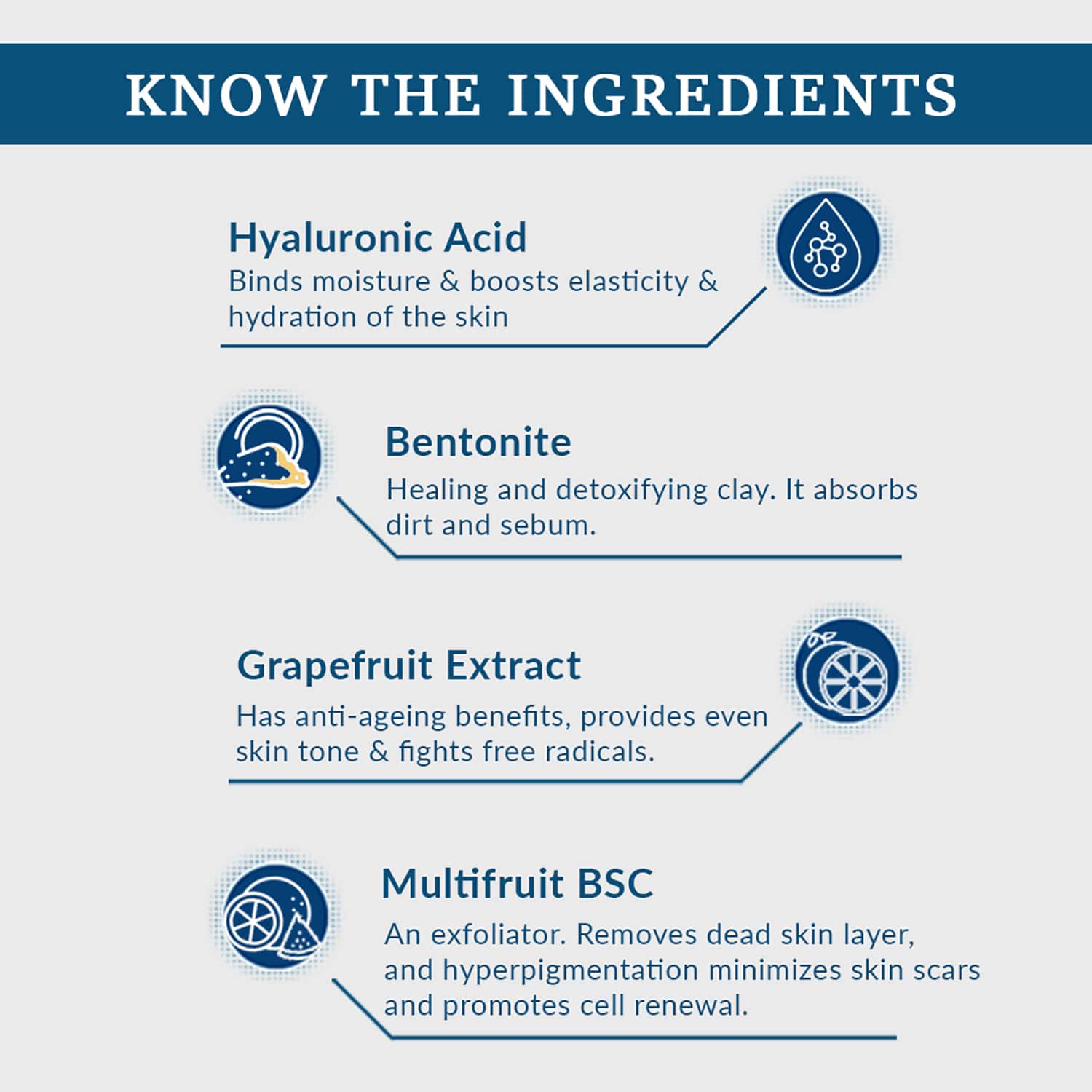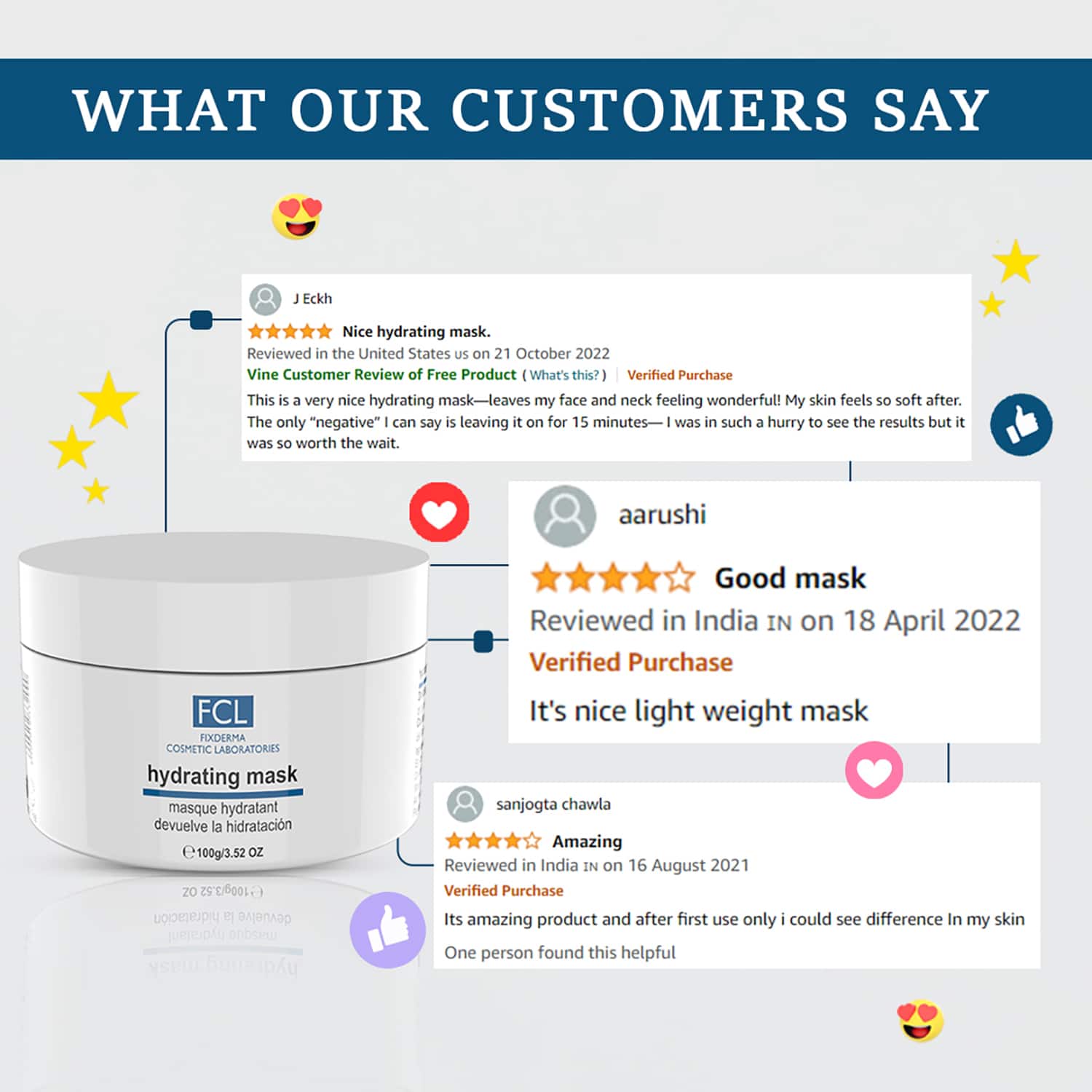 It is a perfect way to boost the hydration level of the skin. It brings you the most therapeutic effect on skin. It is a great choice for irritated, dry and dehydrated skin. Hydration is a must for skin! With time, our skin cells lose the capacity to retain hydration, leading to dull, tired and dehydrated skin. It contains Hyaluronic acid that deep hydrates the skin and locks in hydration for longer. Apart from providing the moisture to the skin it has Multifruit Natural AHA's & Grapefruit Extract that work together to help brighten your complexion promote collagen production and protect your skin from sun damage. It detoxifies the skin's surface and works deep into the pores, leaving the skin visibly detoxified and nourished. Infused with right ingredients, this mask is not just an indulgent treatment but also tackles key skin concerns and conditions from dryness dehydration to large pores and acne. It works on ageing and promotes the cellular renewal of the skin. It is suitable for all skin types Experience the 15 min magic while you relax at home. Get fresh, well hydrated and healthier looking skin.Key Features & BenefitsHYDRATION & BRIGHTEN: Hydrates the skin without making it look oily, helps to brighten skin complexionSKIN PROTECTION: Protects skin from sun damage and suits all types of skin including the most sensitive skin.BENEFITS IN PRE-MATURE AGEING: A substance that protects cells from the damage caused by free radical and neutralize to diminish premature ageingKEY INGREDIENTS: Multifruit BSC, Bentonite, Grapefruit extract, Phytosqualane, Hyaluronic acid, Red Iron Oxide, Titanium DioxideDIRECTIONS FOR USE: Apply generously to face and neck. Leave on 10-15 minutes. Rinse with warm water. Use 2-3 times per week or as neededKey Ingredients:Hyaluronic acid: Reduces fine lines and wrinklesGrapefruit extract: Brightens skinAll Ingredients:Aqua, Kaolin, Glycerin, Octyl Stearate, Water, Vaccinium Myrtillus Fruit Extract, Saccharum Officinarum (Sugar Cane) Extract, Acer Saccharum (Sugar Maple) Extract, Citrus Aurantium Dulcis (Orange) Fruit Extract, Citrus Limon (Lemon) Fruit Extract, Cetearyl Alcohol, Dicetyl Phosphate, Ceteth-10 Phosphate, Bentonite, Dimethicone, Propanediol, Stearic Acid, Citrus Grandis (Grapefruit) Seed Extract, Caprylhydroxamic Acid, Caprylyl Glycol, Glycerol, Squalane, Magnesium Aluminium Silicate, Titanium Dioxide, Cocamidopropyl Pg Dimonium Chloride Phosphate, Capryloyl Glycine, Sodium Hyaluronate, Fragrance, Red Iron Oxide.How to Use:Apply liberally to the neck and face. For 10 to 15 minutes, keep on. Use warm water to rinse. Use as needed, two to three times each week.About the Brand:Founded in 2006, Fixderma Cosmetic Laboratories is an innovative cosmeceutical company with a mission to improve people's skin health. Their skincare philosophy is based on three main pillars, i.e., prevent, protect, and correct. Fixderma has developed cutting-edge products with rich formulations, each consisting of clinically proven active ingredients that bolster skincare efficacy. Also, all their products are tested by dermatologists to ensure proper effectiveness towards any skin problem without any compromise.