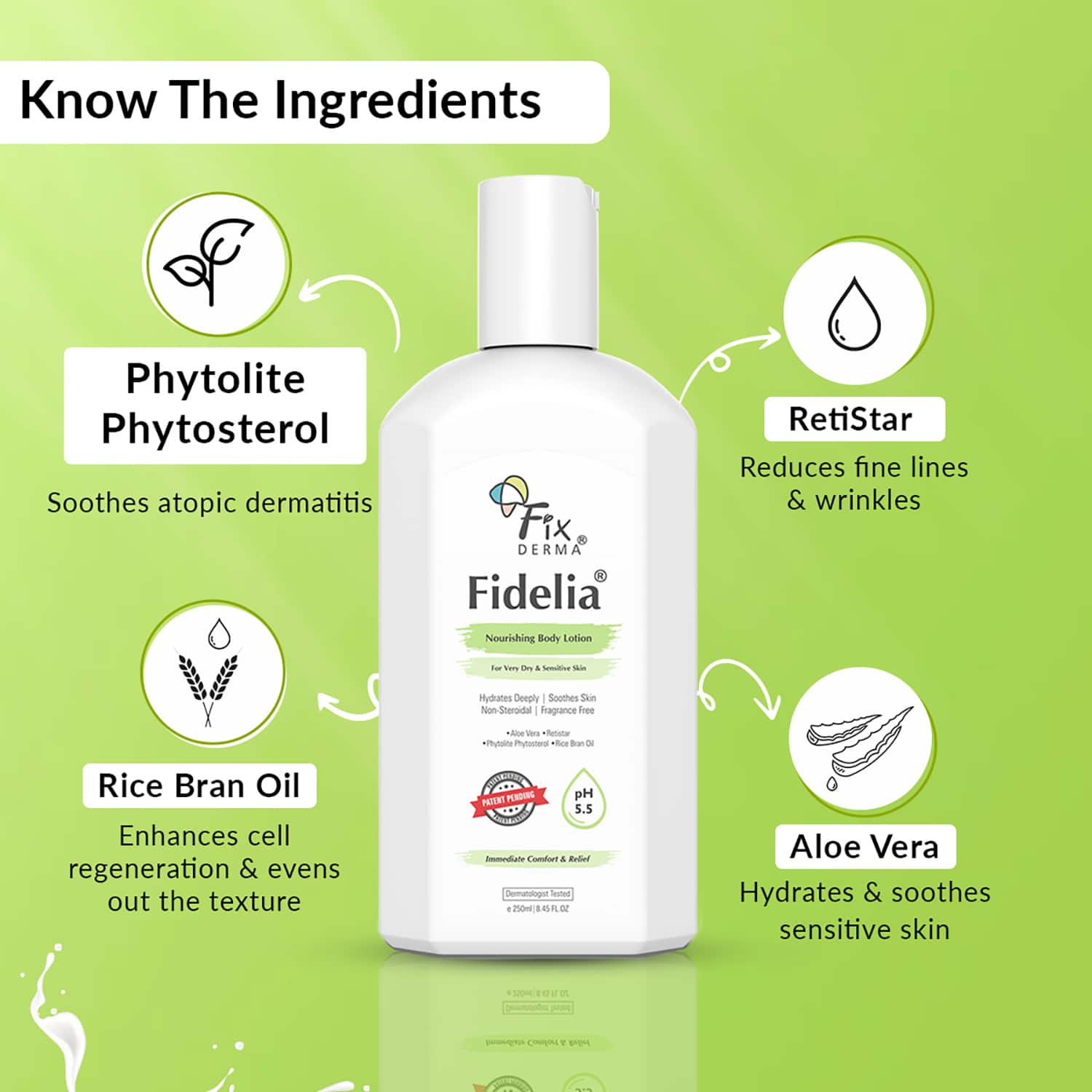 Fixderma Fidelia Nourishing Body Lotion for Very Dry Skin with Rice Brain Oil & Aloe Vera (250ml)