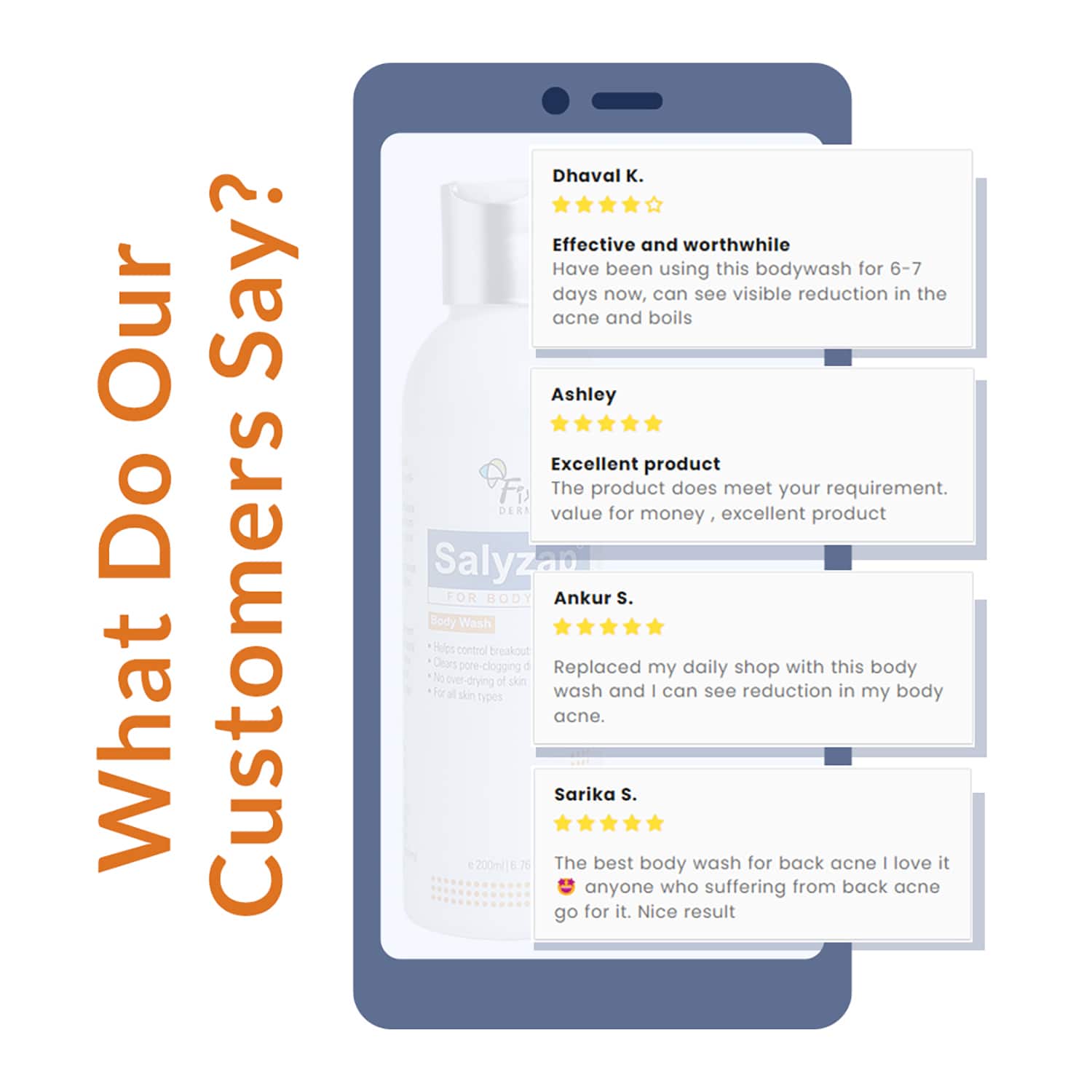Get ultimate glowing skin with the Fixderma Salyzap Acne Body Wash - (200ml). Enriched with tea tree oil and grapefruit extract, this Fixderma body wash removes oil, dirt and dead skin for a clean and glowing look. It is specially formulated to treat inflammations and breakouts around the shoulder, chest, back, and other body parts.Key Features & Benefits:Enriched with tea tree oil to reduce skin redness and inflammationsCleansing body wash makes the skin soft and suppleGrapefruit extract fades blemishes and acne marksDermatologically tested body wash for safe useKey Ingredients:Tea tree oil: Soothes irritated skinGrapefruit extract: Fades blemishes and acne marksHow to Use:Take the body wash. Gently apply it to your damp skin and work up a lather. You can use a loofah for better exfoliation. Rinse off with water.All Ingredients:Aqua (Water), Ammonium Lauryl Sulfate, Sodium Cocoamphoacetate, Salicylic Acid, Azelaic Acid, Propanediol, Phenoxyethanol, Ethylhexylglycerin, Panthenol, Citrus Grandis (Grapefruit) Extract, Xanthan Gum, Peg/Ppg-8/3 Diisostearate, Fragrance, Melaleuca Alternifolia (Tea Tree) Leaf Oil, Tocopheryl Acetate, Disodium Edta, Peg-40 Hydrogenated Castor OilAbout the Brand:Fixderma believes in "healthy skin." With the commitment to make up for their belief, Fixderma started its venture back in 2006 with Shaily Mehrotra. The brand offers scientifically proven skin improvement products. They have 12 years of successful history in creating dermatologically-approved cosmetic products that are accessible, effective, and suit all skin types.Check out more Fixderma Body Wash & Shower Gel options here, or browse through tokocart's full range of Body Wash & Shower Gel from top global brands.You can also explore other products from the world of Fixderma here on tokocart.