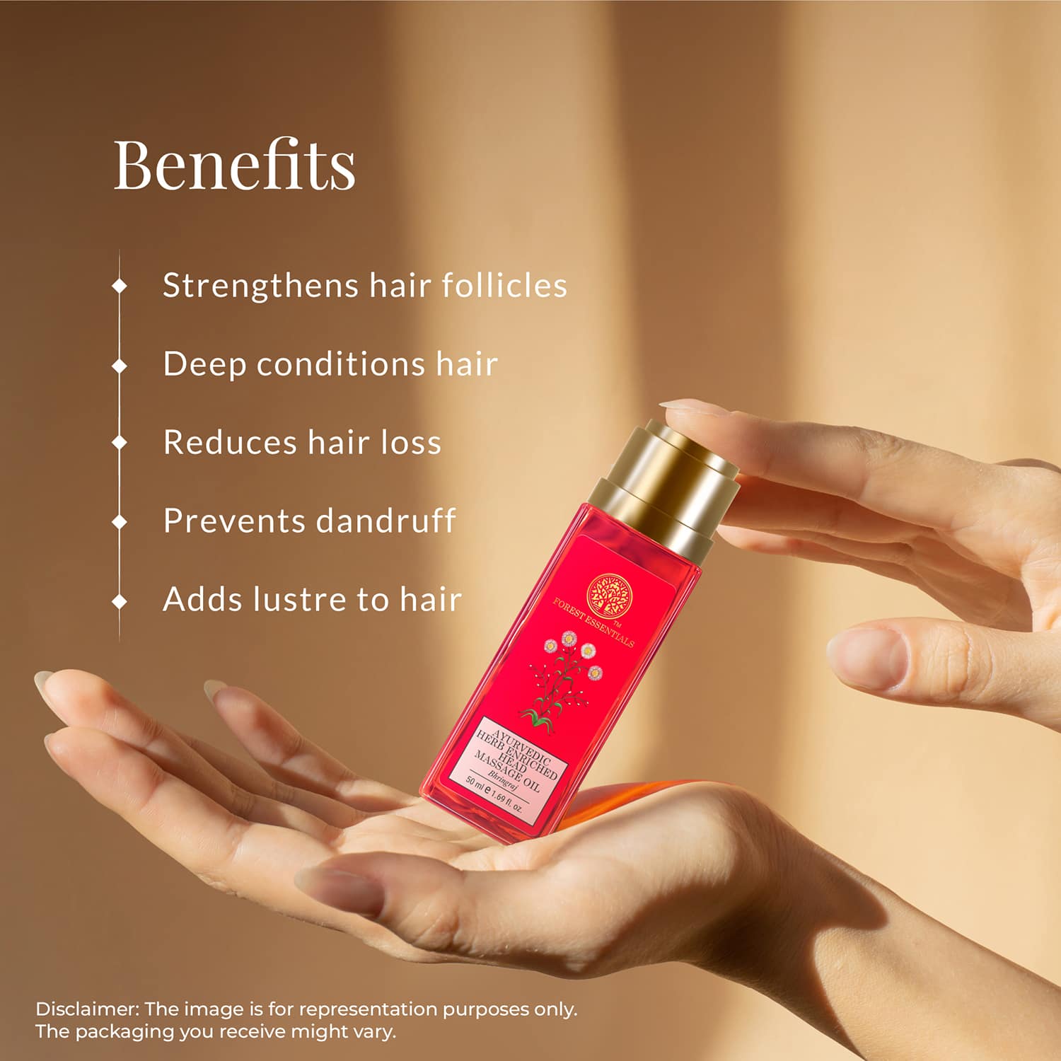 Relax and unwind with the Forest Essentials Bhringraj Ayurvedic Herb Enriched Head Massage Hair Oil (200ml). This ayurvedic head massage oil is nourishing hair oil prepared with bhringraj, coconut oil, black sesame oil, goat's milk, and herbal extracts to prevent hair loss and promote healthy hair growth. Also, this Forest Essentials hair oil improves the overall texture and volume of the hair and strengthens the hair follicles for long, luscious locks.Key Features & Benefits:Contains coconut oil, black sesame oil, goat's milk, and bhringraj to nourish the hairHelps prevent hair loss by strengthening the hair folliclesImproves the hair texture and adds volumeDevoid of chemicals, parabens, and petrochemicals for risk-free useKey Ingredients:Bhringraj: Promotes hair growth, strengthens and nourishes the hair, and prevents dandruffCoconut oil: Moisturizes the hair and has antibacterial and anti-inflammatory properties to heal and soothe the scalpBlack sesame oil: Deeply nourishes the hairAll Ingredients:Brahmi Extract (Bacopa Monnieri) - 5.0%, Bhringraj Extract (Eclipta Alba) -2.0%, Henna Extract (Lawsonia Inermis) - 2.0%, Bala Extract (Sida Cordifolia) - 2.0%, Bakuchi Extract (Psoralea Corylifolia) - 2.0%, Licorice Root Extract (Glycyrrhiza Glabra) - 2.0%, Nagarmotha Extract (Cyperus Rotundus) - 2.0%, Padmaka Extract (Prunus Cerasoides) - 2.0%, Dhataki Extract (Woodfordia Fruticosa) - 1.0%, Lodhra Extract (Symplocos Racemosa) - 1.0%, Anantmool Root Extract (Hemidesmus Indicus) - 1.0%, Kachoor Extract (Curcuma Zedoaria) - 1.0%. Base Contains Sesame Oil (Sesamum Indicum), Virgin Coconut Oil (Crocus Nucifera), Vitamin E (Tocopheryl Acetate), Goat'S Milk - Q.S.How to Use:Warm a small quantity of the oil by immersing the oil container in hot water in a bowl of preferably copper or kansa metal. Apply it onto the hair and massage it from the scalp to the tips of the hair. Leave it on for thirty minutes and wash it with a sulfate-free hair cleanser.About the Brand:Established in 2000 by Mira Kulkarni in New Delhi, India, Forest Essentials is an authentic and traditional skin and hair care brand. They create formulas rooted in the ancient science of Ayurveda. The quintessential beauty brand combines the ancient beauty rituals of Ayurveda with a stylish, modern aesthetic to deliver highly effective products to its consumers. They believe that beauty products made out of living substances, such as plants and their extracts, are balanced by nature and possess the vibratory energy that makes up life. All of their products, from kajals, shampoos, conditioners, body mists, serums, and cheek tints, to baby powder, contain all the purifying, nourishing, and balancing properties necessary to nurture the skin and for eternal beauty.Check out more Forest Essentials Hair Oil options here, or browse through tokocart's full range of Hair Oil from top global brands.You can also explore other products from the world of Forest Essentials here on tokocart.