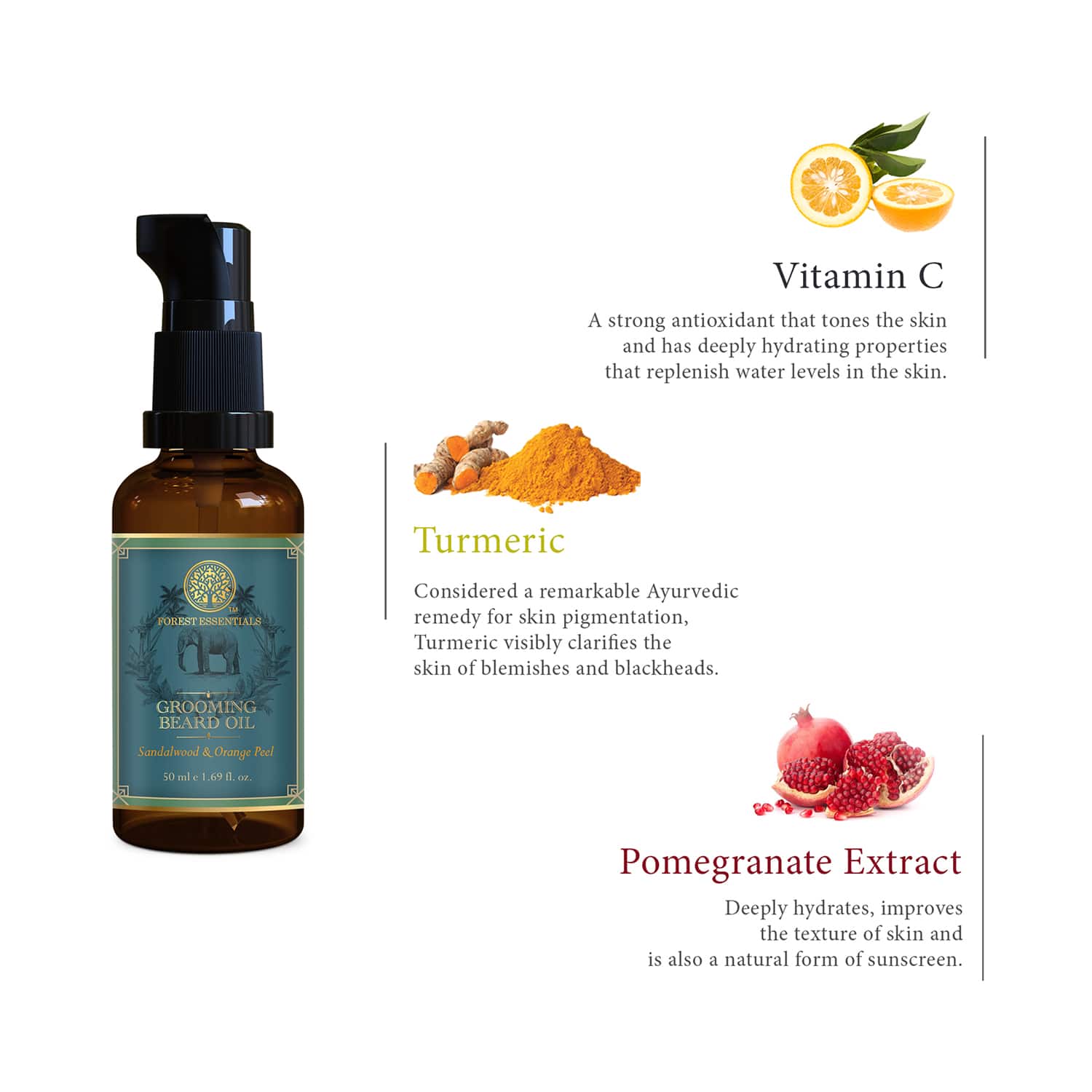 Key Ingredients:Turmeric: Soothes the skinPomegranate seed: Nourishes hairSweet almond: Conditions beardOlive: Adds shine to hairSesame: Softens hair