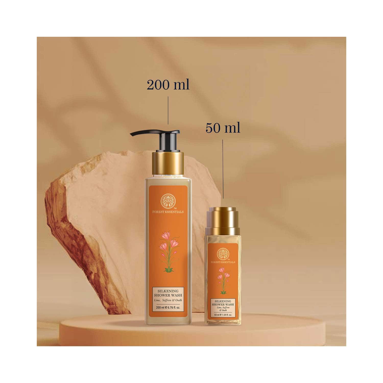 Indulge in a luxurious bathing experience with the Forest Essentials Travel Size Silkening Shower Wash Lime Saffron and Oudh Natural Body Wash (50 ml). This natural body wash combines the invigorating scents of fresh lime, spicy saffron, and smoky Oudh oil to purify and revitalize your skin. Enriched with aloe vera juice and neem leaf extract, this Forest Essentials silkening body wash hydrates and nourishes while delicately scenting the skin for a refreshing cleanse.Key Features & Benefits:Infused with aloe vera juice and neem leaf extracts to provide deep hydrationInvigorating fragrance of lime, saffron, and Oudh enhances your bathing ritualContains ingredients such as neem, Kashmiri saffron, and Kerala lime to hydrate your skin and add an earthy fragranceSulfate-free formula cleanses and nourishes the skinKey Ingredients:Neem: Has antibacterial properties and maintains skin healthAloe vera: Calms and hydrates your skinOudh oil: Has a unique earthy fragranceKashmiri saffron: Purifies your skin and imparts a brilliant complexionAll Ingredients:Neem, Aloe Vera, Oudh Essential Oil, Kashmiri Saffron, Kerala Lime, GokhruHow to Use:Take a small amount of the body wash into your palm or a loofah. Apply it all over your body, then gently massage it over your skin, working up a lather. Rinse the body wash off thoroughly and pat your skin dry with a soft towel.About the Brand:Established in 2000 by Mira Kulkarni in New Delhi, India, Forest Essentials is an authentic and traditional skin and hair care brand. They create formulas rooted in the ancient science of Ayurveda. The quintessential beauty brand combines the ancient beauty rituals of Ayurveda with a stylish, modern aesthetic to deliver highly effective products to its consumers. They believe that beauty products made out of living substances, such as plants and their extracts, are balanced by nature and possess the vibratory energy that makes up life. All of their products, from kajals, shampoos, conditioners, body mists, serums, and cheek tints, to baby powder, contain all the purifying, nourishing, and balancing properties necessary to nurture the skin and for eternal beauty.