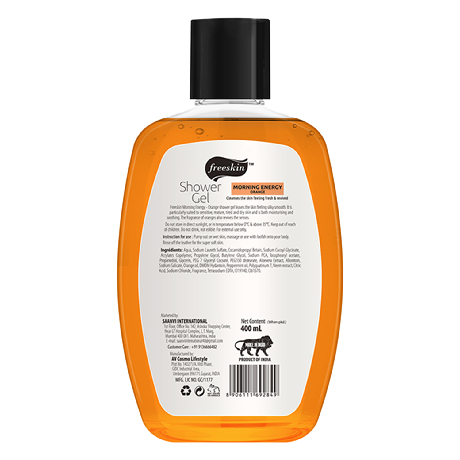Calm your skin with the Freeskin Orange Morning Energy Shower Gel - (400ml). It gently cleanses and moisturises your skin, making it soft and silky. This hydrating shower gel has natural ingredients like neem and orange to nourish your skin while soothing it from irritation. Its pleasant scent awakens your senses with every shower.Enriched with orange and neem to detoxify and cleanse the skinRefreshing bath and shower gel suitable for everyday useHelps to stimulate blood circulation and soothes dry skinMinimises skin pores and reduces skin inflammationCruelty- and paraben-free shower gel is safe for useAloe vera: Moisturises and soothes skinNeem: Moisturises and nourishes skinOrange: Nourishes the skinPour an adequate amount of shower gel on your palms and work gently to create a rich lather. You can also use a loofah to cleanse as well as exfoliate your skin.Freeskin is a beauty brand that specialises in creating skincare products that cater to every individual's need. The brand formulates the best skincare products, incorporating natural skin-soothing ingredients to nurture every skin type. Freeskin presents a wide range of products, from hand washes to shower gels and scrubs. They use a variety of natural ingredients which are effective for the skin and are dermatologically tested. All the products are cruelty-free and contain no paraben, silicone, or mineral oil to suit all skin types.Check out more Freeskin Body Wash & Shower Gel options here, or browse through tokocart's full range of Body Wash & Shower Gel from top global brands.You can also explore other products from the world of Freeskin here on tokocart.
