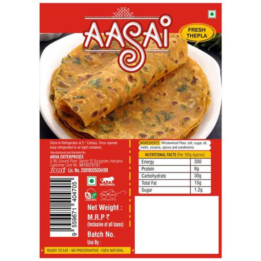 Looking for a yummy and healthy snack on the go? Try Aasai Fresh Thepla that are popular while travelling. Our ready-to-eat theplas are 100% natural and contain no preservatives. Enjoy the taste of homemade theplas anytime, anywhere with Aasai. Order now and satisfy your cravings!