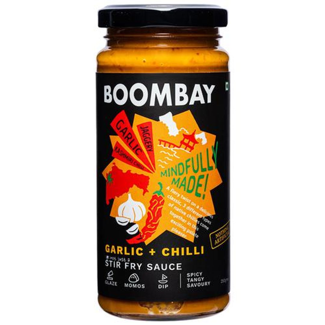 BOOMBAY Garlic + Chilli Stir Fry Sauce is a 100% plant-based version, loaded with zealous tang and a bite to boot that is hard to resist. It creates a dynamic and tasty sauce that gives your stir-fry meals more depth and complexity by fusing the pungent notes of garlic with the sweltering heat of chillies. A powerful and delectable sauce is produced when the savoury undertones of garlic are complemented by the spicy kick of the chilli. It can be used as a marinade for meats or tofu, a sauce for stir-fries, or a garnish for grilled or roasted foods. It is a tasty and adaptable addition to your kitchen cupboard because of its robust and spicy flavour, which brings a rush of excitement to a variety of stir-fried dishes. It is made with premium ingredients, so you may enjoy a sauce that has been thoughtfully created. You get a sauce that is both delicious and healthy because it is prepared without synthetic preservatives, colours, or flavours and is made with real, natural ingredients. To improve your culinary experience, check out Big Basket's fascinating range of BOOMBAY spreads, dips and sauces. From tangy chutneys to scalding hot sauces, BOOMBAY provides a selection of alternatives made from premium ingredients that are ideal for giving your dishes a flavour boost. Therefore, order today and have them delivered right to your home.