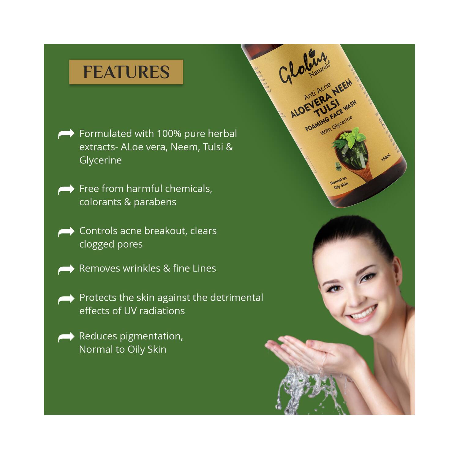 Globus Naturals Aloe Vera Neem Tulsi Foaming Face Wash (150ml)