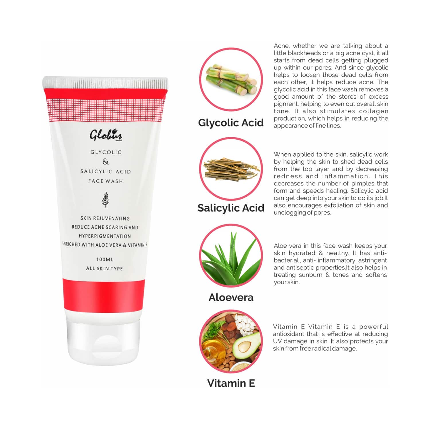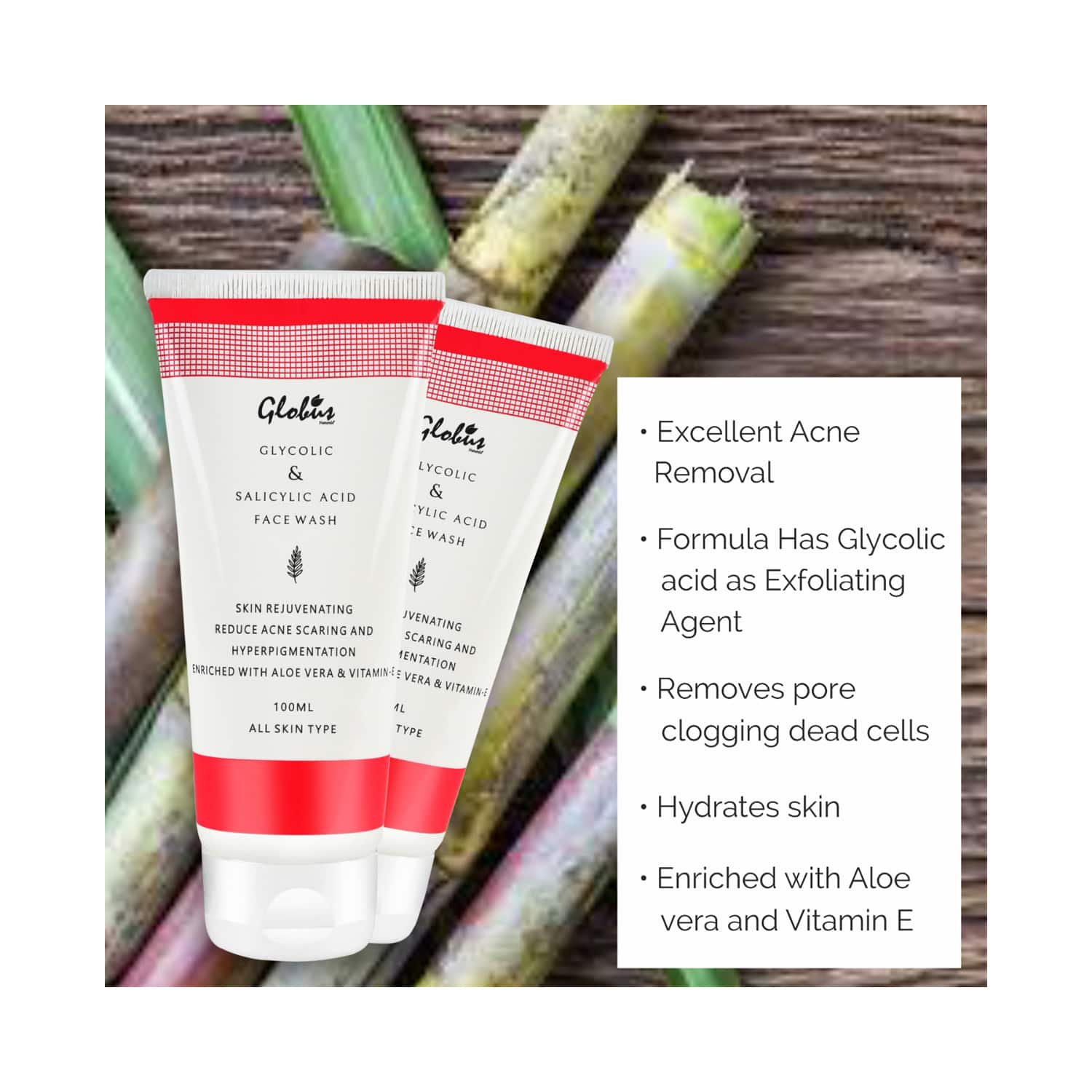 Globus Naturals Glycolic & Salicylic Acid Pimple Clear Face Wash (100ml)