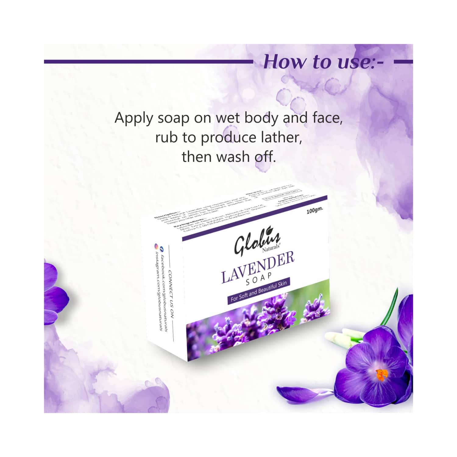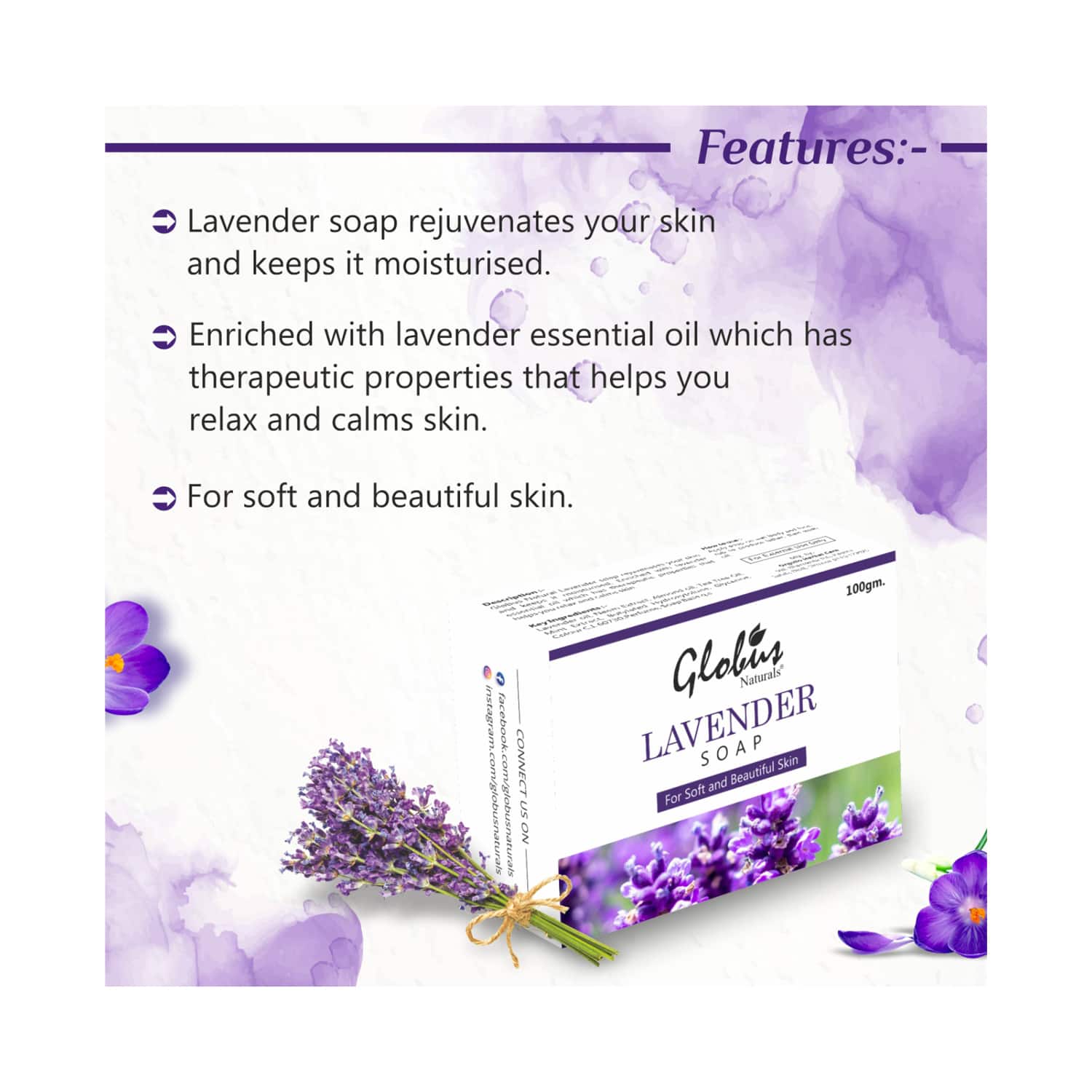 Time to care for your skin with the Globus Naturals Lavender Soap (100g). This olive oil soap removes dirt and impurities from the skin and provides nourishment. It is an anti-aging body soap that reduces wrinkles and fine lines. The Globus Naturals bathing bar is also a soothing soap that calms irritated and inflamed skin.Key Features & Benefits:Infused with lavender to soothe inflamed skinNourishing bathing bar provides soft and supple skinPurifying body soap removes dirt and impurities from the skinCruelty-free soap ensures safe useKey Ingredients:Almond oil: Moisturizes the skinNeem: Provides antioxidant benefitsLavender: Soothes the skinAll Ingredients:Lavender Oil, Neem Extract, Almond Oil, Tea Tree Oil, Mint Extract, Butylated Hydroxytoluene, Glycerine,How to Use:Dampen your skin. Then use water to wet the soap and rub it gently over your body. Shortly after, rinse it off with water and towel dry your body to get fresh and scented skin.About the Brand:Globus Group is headquartered in New Delhi, India. Dr. Anil Verma, a dedicated and passionate doctor with many years of medical experience, founded the brand. Globus Naturals is a world-class manufacturer of beauty and wellness products, offering various quality products designed to support health from the inside out. They use only the best ingredients and test each product to ensure its effectiveness and safety. Whether you want to improve your skin, boost your energy, or promote health and wellness, their products are the perfect way to harness the power of Ayurveda and experience its benefits.Check out more Globus Naturals Soaps options here, or browse through tokocart's full range of Soaps from top global brands.You can also explore other products from the world of Globus Naturals here on tokocart.