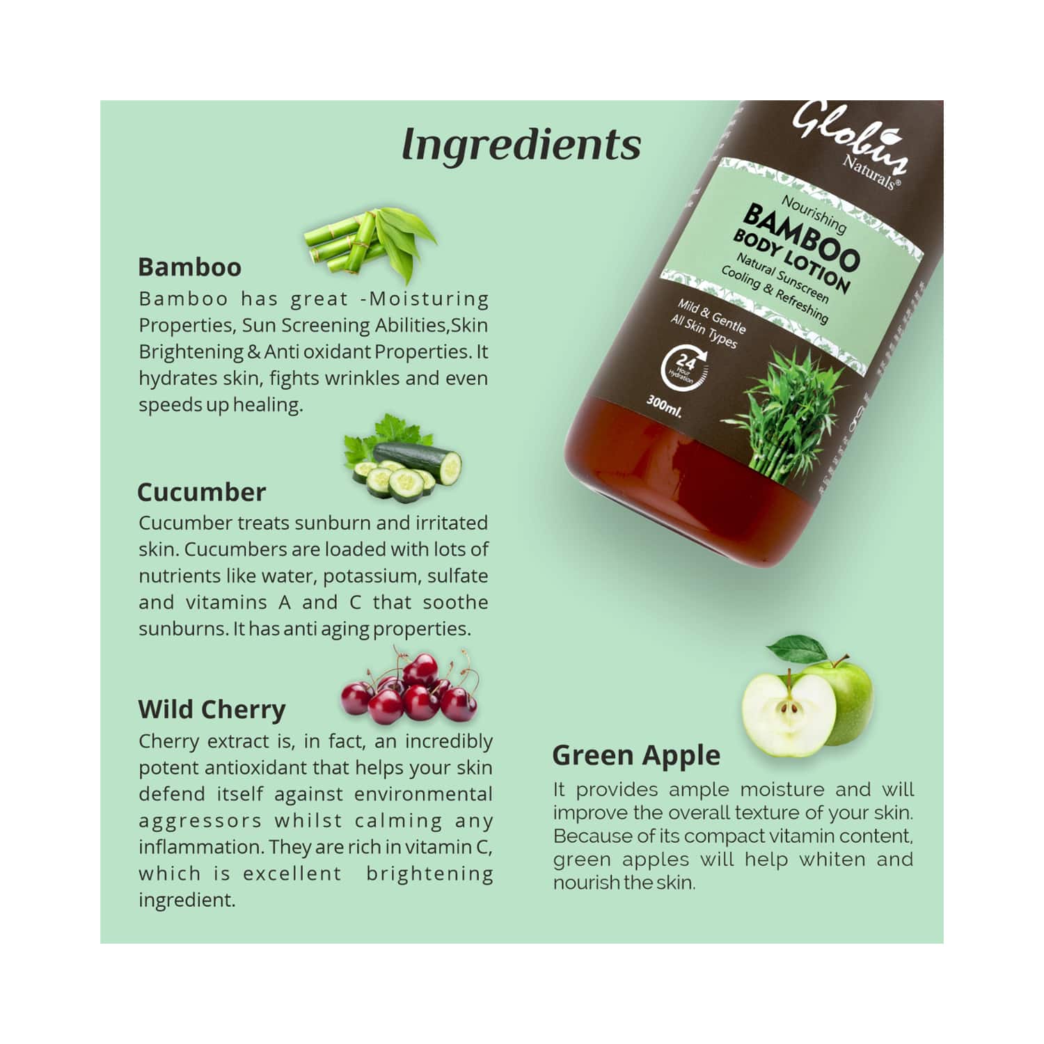 All Ingredients:Bamboo, Cucumber, Wild Cherry, Green Apple