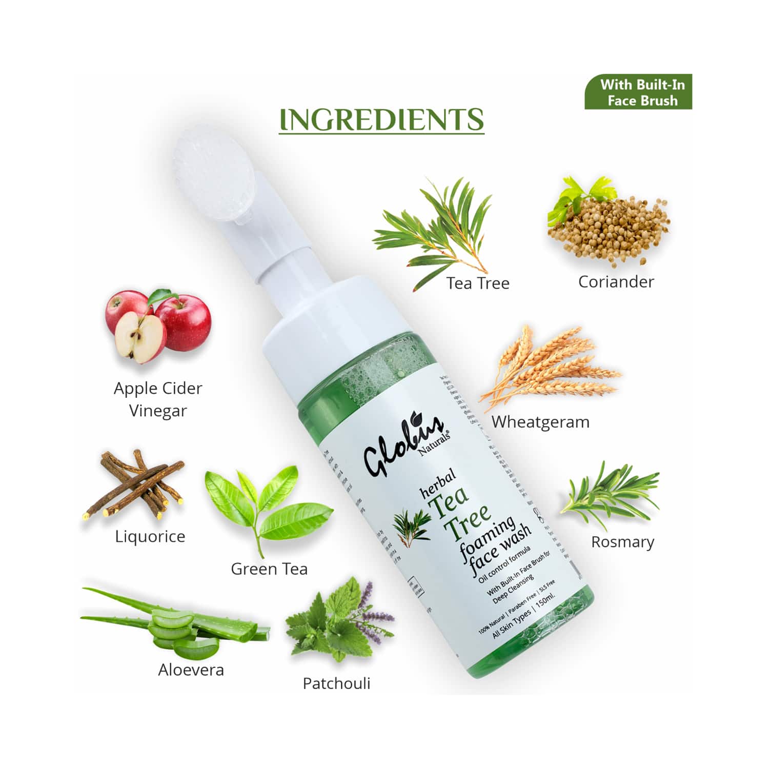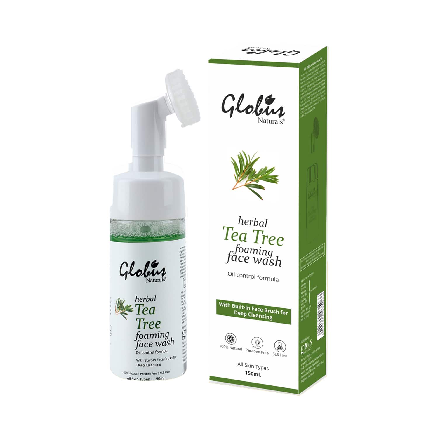Globus Naturals Tea Tree Foaming Face Wash With Silicone Face Massage Brush (150ml)