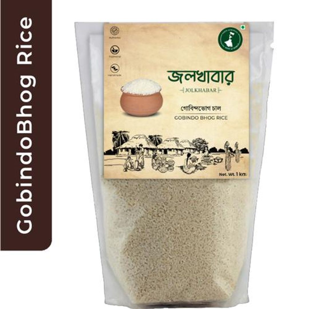 Jolkhabar Gobindobhog Rice is a premium aromatic rice and is highly nutritious with an excellent taste. This staple rice has an irresistible taste and flavour. It is a short grain, white, aromatic, sticky rice having a sweet buttery flavour. It is rich in proteins, fiber, and anti-oxidants. This short-grained rice comes in a bright white colour. It is known for its exotic aroma and flavourful taste.