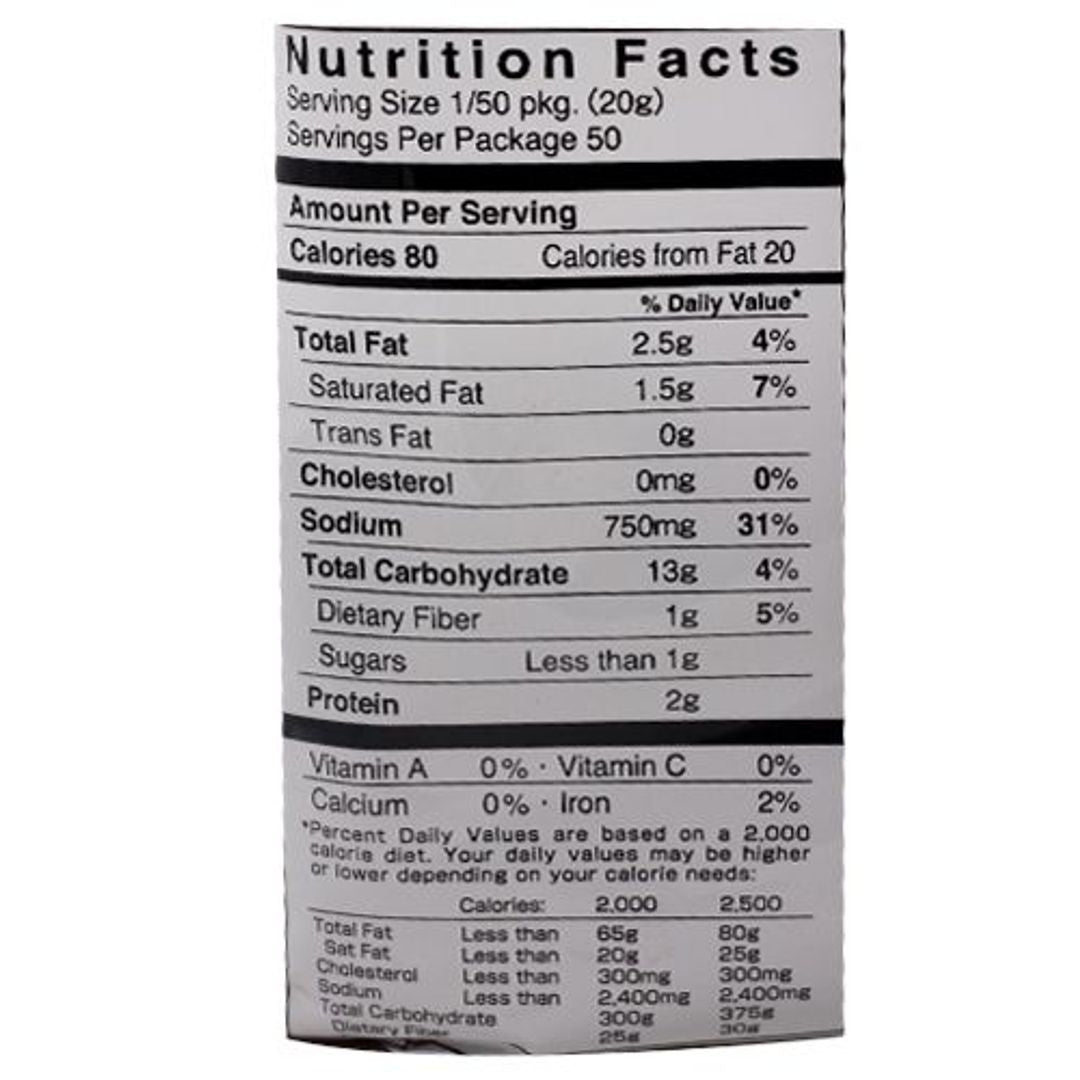 Wheat Flour, Edible Oils (Palm Oil (Soy), Canola Oil), Salt, Curry Powder, Sugar, Spices, Caramel Colour, Monosodium Glutamate, Disodium Guanylate, Disodium Inosinate, Onion Powder, Sucrose Fatty Acid Esters (Emulsifier), Malic Acid.
