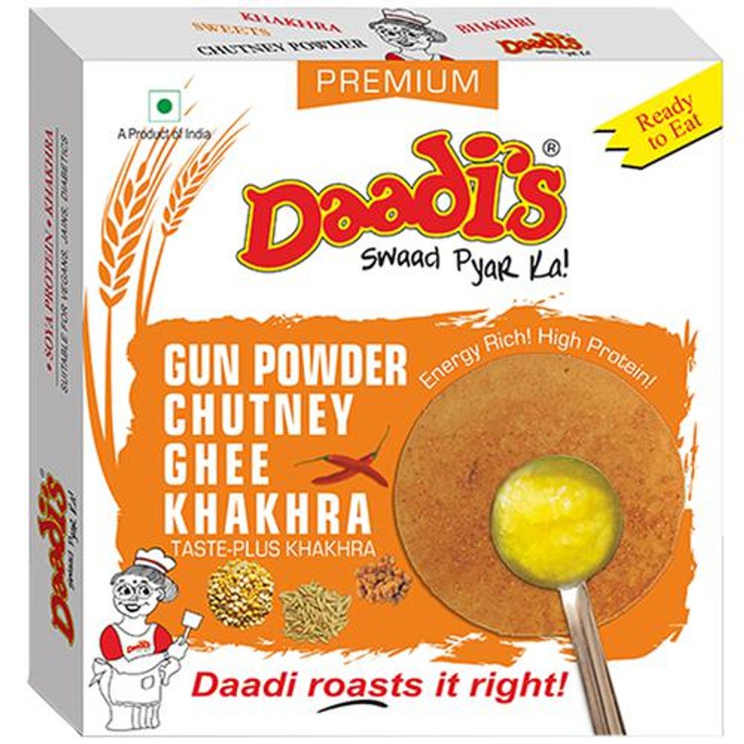 Daadi roasts it right. Yes, you heard it. By opting for Daadi's Khakhra, you get a definite "Swaad Pyaar Ka' just as homely as it can get. Daadi’s Gun Powder Chutney Ghee Khakhra is a delicious, tasty recipe which will leave you impressed to a great extent. Super crunchy and fun to try, they are made from pure cow ghee and are a reliable source of good fats. With that, it has great vitality too and helps in boosting the immune system right. So, what are you waiting for then? Pair it with your morning breakfast or evening hi-tea and have a delicious meal.