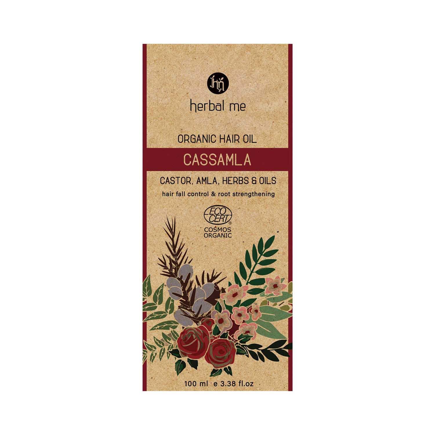 Nourish your locks with the Herbal Me Cassamla Organic Hair Oil (100ml). It's an organic oil with castor, amla, and a blend of herbs to strengthen your hair follicles and promote hair regrowth. This oil treats dry and itchy scalp, which leads to hair fall control and strengthening of hair roots. This Herbal Me oil helps to keep your hair protected, healthy, and strong. This hair-strengthening oil combats dandruff and reduces hair fall.Key Features & Benefits:Hair oil with castor and amla to promote new hair growth and get voluminous hairInfused with a blend of natural herbs to make your locks more resistant to breakage by strengthening themThis oil helps in hair fall control and root strengtheningHelps clear your scalp of any flakes for a refreshing and itch-free experienceThis hair oil is food for scalp that results in stronger hairRich in proteins and antioxidants to help keep your hair healthy and nourishedAll Ingredients:Cocus Nucifera (Coconut) Oil*, Sesamum Indicum (Sesame) Oil*, Ricinus Communis (Castor) Oil*, Prunus Dulcius (Sweet Almond) Oil*, Olea Europaea (Olive) Oil*, Ocium Tenuiflorum (Tulsi) Leaf Powder, Murraya Koenigi (Curry) Leaf Powder, Trigonella Foenum (Fenugreek) Seed Powder , Emblica Officinalis Gaertin (Amla) Fruit Powder*, Mentha Piperita (Mint) Leaf Powder, Vetiveria Zizanioides (Vetiver), Lawsonia Inermis (Henna) Leaf Powder, Psoratea Corylifolia (Babchi), Helianthus Annuus (Sunflower) Seed Oil, Citrus Sinensis (Sweet Orange) Oil* and Tocopherol (Vitamin E).*Ingredients from organic farming.98.4% of the total ingredients are from organic farming. 100% natural origin of total. Cosmos Organic certified by Ecocert Greenlife according to COSMOS standard.How to Use:Massage gently into scalp with circular motions for better absorption.Apply liberally on hair from root to end.Leave overnight or for at least 3-4 hours for better absorption.Wash with a mild shampoo or a Herbal Me certified organic shampoo bar.Repeat twice a week for best results.Above routine is a must follow post Herbal Me natural hair colour application.About the Brand:Launched in 2014 by Bindiya Rawal, Herbal Me is a skincare brand with organic and natural products. This brand's driving motive is uncovering exotic secrets of nature and using them to manufacture various products. They ship their products worldwide, including North American, European, South Asian, and Middle Eastern markets. The products of this brand Are made with herbal botanicals only. Their products include haircare, skincare, and body care essentials like face oils, henna powder, cleansers, and more. All their products Are cruelty-free and vegan for safe and reliable use on your skin.Check out more Herbal Me Hair Oil options here, or browse through tokocart's full range of Hair Oil from top global brands.You can also explore other products from the world of Herbal Me here on tokocart.