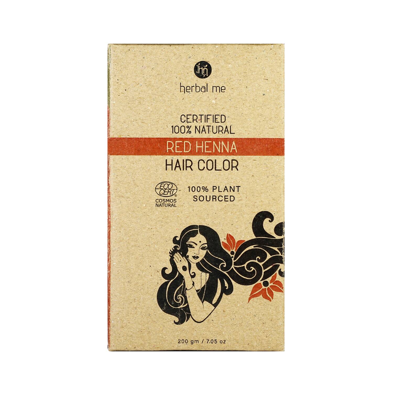 Herbal Me Hair Colors are made from ingredients that are obtained only from plants. This ensures that all the ingredients are 100% natural leaf powders, safe for hair, as well as completely natural. So, instead of using chemical dyes that can damage your hair over time, switch to Herbal Me Hair Colors which are not only completely safe for your hair, but also provide natural benefits.First-time users of Herbal Me Henna may not be able to achieve the desired colour initially if the hair has been chemically treated or dyed earlier. In such a case, this colour will have to be applied 3-4 times or even more depending upon the condition of the hair. But, once the hair starts getting repaired and nourished, the result is long-lasting and without any side effects.Applying Plant-Based Hair Colors is an effective and time tested way for covering greys and imparting the desired colour. Henna and herbs application is one of the best natural hair care routine that has been practised over centuries for thick & voluminous hair, way before the invention of synthetic and permanent hair dyes.WHAT IS CERTIFIED ORGANIC?We at Herbal Me have curated our range of certified organic & natural cosmetics according to the COSMOS standard by Ecocert Greenlife (France) which is a globally recognised certification body for cosmetics. The COSMOS standard lays down stringent measures overseen by site inspections & guidelines for every aspect of the manufacturing process to ensure environment-friendly production, responsible use of natural resources, absence of petrochemical ingredients & recyclable packaging.The pack contains:Detailed instruction manualColor chartApplication brushShower capA pair of GlovesKey Features & Benefits: Conditions nourish and rejuvenate the hair and rejuvenate leaving it silky and shiny.Provides long-lasting colour and shine, without the risk of colour fading.Moisturizes and nourishes the scalp; controls dandruff and maintains the pH levels.Prevents hair fall and hair thinning and improves hair texture.Fully committed to the environment, this hair colour comes in biodegradable and recyclable packaging.Suitable for sensitive scalps and allergic skin as it's free from PPD, ammonia, peroxide and dyes.Key Ingredients:Lawsonia Inermis (Henna) Powder,100% Natural origin of total. COSMOS NATURAL certified by Ecocert Greenlife according to COSMOS standard.All Ingredients:Lawsonia Inermis (Henna) Powder,100% Natural origin of total. COSMOS NATURAL certified by Ecocert Greenlife according to COSMOS standard.How to Use:Soak the contents of the colour mix in a non-metallic bowl, with hot water, to form a paste of right consistency that can easily spread on the hair.As the paste cools down to lukewarm, immediately apply it on pre-washed hair from roots to ends for better coverage, using gloves and application brush.Leave the hair for two hours and cover the head with a shower cap.Rinse the hair with water and towel dry. Do not use shampoo yet.For best results, it is recommended to cleanse the hair two days later, as it takes 48 hours to achieve the desired colour.It is advisable to apply Herbal Me Natural Hair Oil 2-3 hours (or night long for up to 8 hours) before cleansing the hair.Repeat the process 1-2 times a month as and when the need arises.About the Brand:Certified by Ecocert GreenlifeWe at Herbal Me have curated our range of certified organic & natural cosmetics in accordance to COSMOS standard by Ecocert, France, which is now a globally recognised certification body for cosmetics. The COSMOS standard lays down stringent measures overseen by site inspections for every aspect of the manufacturing process.Made Ethically.For having a good skincare and haircare routine, one usually needs to spend a fortune on certified products. We have priced our products ethically and that too in better quantities to give you more for less.& Responsibly.We have taken effective measures to reduce our carbon footprint. Our products have only biodegradable ingredients and packaging. All of our ingredients are derived from indigenously grown plants. By doing so we are buying our produce only from Indian farmers and also helping them switch to organic farming.Check out more Herbal Me Hair Colour options here, or browse through tokocart's full range of Hair Colour from top global brands.You can also explore other products from the world of Herbal Me here on tokocart.