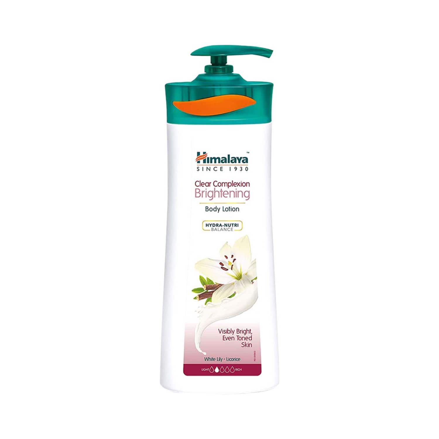 Himalaya Clear Complexion Brightening Body Lotion is a lightweight product that quickly penetrates the skin, leaving it hydrated without a greasy feel. Enriched with white lilies and Licorice, this body lotion is a nourishing blend that rejuvenates dry, dull skin to deliver visible radiance and even firming. This fast-absorbing, non-greasy formula is packed with natural UV protection to shield skin from the sun's harmful rays.Key Features & Benefits:Glides and absorbed easily.Light on the skin.Does not leave any residue.Hydrating.Apt for summers.Make skin even toned.All Ingredients: White Lily & Licorice About the Brand:A brand synonymous with safe and efficacious herbal products, Himalaya Herbals was founded in 1930 by Mr. M. Manal with a clear vision to bring Ayurveda to society in a contemporary form and to unravel the mystery behind the 5,000 year old system of medicine. Himalaya has pioneered the use of modern science to rediscover and validate Ayurveda's secrets. ISO 9001:2000 Cutting edge technology is employed to create pharmaceutical-grade Ayurvedic products. The company has focused on developing safe, natural and innovative remedies that will help people lead richer, healthier lives.Check out more Himalaya Body Lotions & Moisturisers options here, or browse through tokocart's full range of Body Lotions & Moisturisers from top global brands.You can also explore other products from the world of Himalaya here on tokocart.