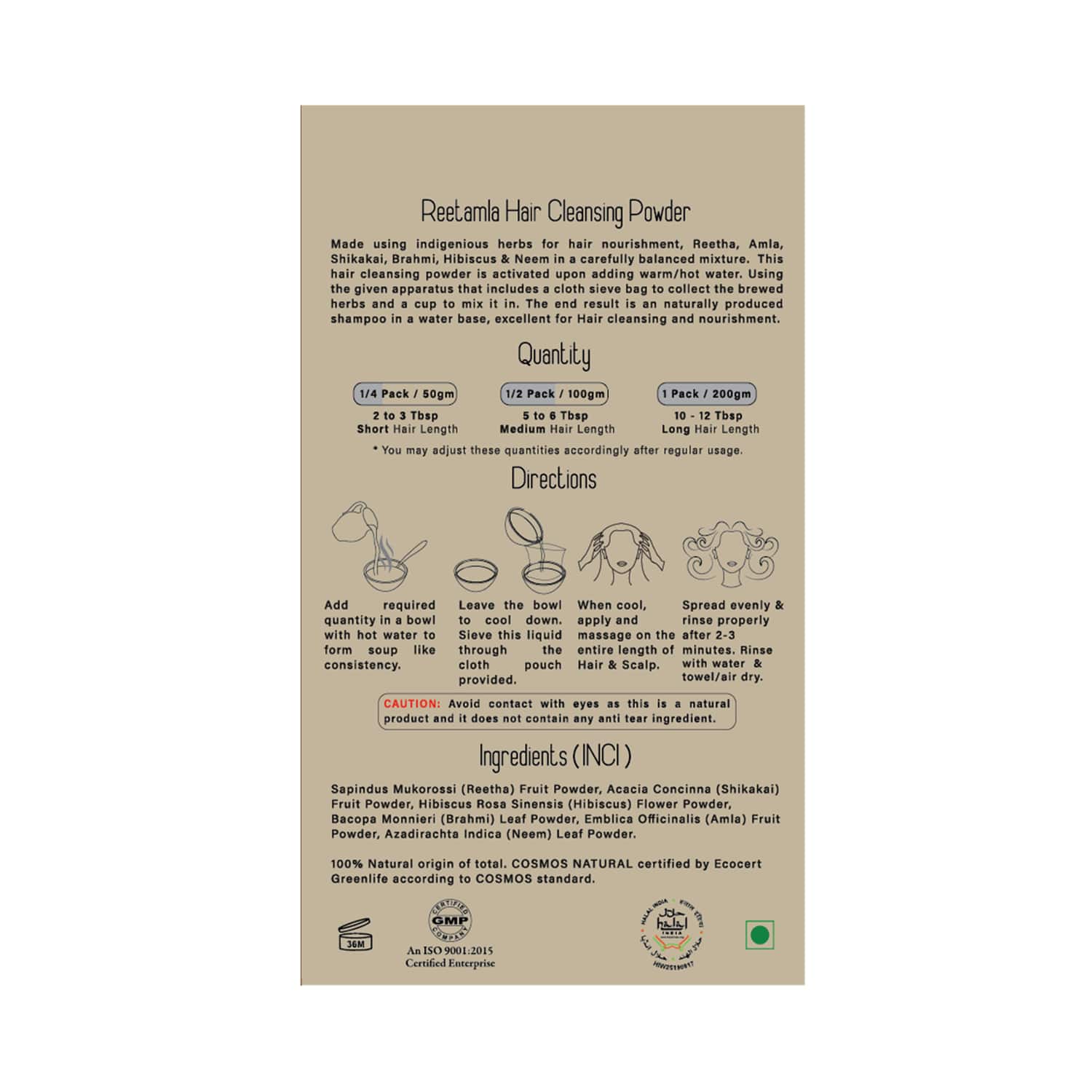 Do you sometimes feel that the hair is not clean? Then, the Herbal Me Reetamla Natural Hair Cleansing Powder (200g) is what you need. Enriched with reetha and amla, this hair cleansing powder delicately removes all impurities and dirt from your scalp without altering the pH balance of the scalp. This Herbal Me hair cleansing powder takes utmost care not to damage the delicate cuticle structure of the hair. It strengthens your hair cuticles, making them look shiny and healthy. This natural hair shampoo enhances your hair's volume and thickness.Key Features & Benefits:Hair cleansing powder with reetha and amla, two natural ingredients with healing properties for scalp careSurfactant and chemical-free shampoo to cleanse and tone your scalp without altering the natural pH balanceHelps to strengthen hair cuticles for a healthy-looking scalp with luxurious strandsBreaks down oils and build-up debris to leave your locks feeling clean and conditionedAll Ingredients:Moroccan Lava (Rhassoul) Clay, Sapindus Mukorossi (Reetha) Fruit Powder, Acacia Concinna (Shikakai) Fruit Powder, Hibiscus Rosa Sinensis (Hibiscus) Flower Powder, Bacopa Monnieri (Brahmi) Leaf Powder, Emblica Officinalis (Amla) Fruit Powder, Azadirachta Indica (Neem) Leaf Powder.100% Natural origin of total. COSMOS NATURAL certified by Ecocert Greenlife according to COSMOS standard.How to Use:Add required quantity in a bowl with hot water to form a soup like consistency.Leave the bowl cool down. Sieve this liquid through the cloth pouch provided.When cool, apply and massage on the entire length of hair & scalp.Spread evenly & rinse properly after 2-3 minutes.Rinse with water & towel/air dry.About the Brand:Launched in 2014 by Bindiya Rawal, Herbal Me is a skincare brand with organic and natural products. This brand's driving motive is uncovering exotic secrets of nature and using them to manufacture various products. They ship their products worldwide, including North American, European, South Asian, and Middle Eastern markets. The products of this brand Are made with herbal botanicals only. Their products include haircare, skincare, and body care essentials like face oils, henna powder, cleansers, and more. All their products Are cruelty-free and vegan for safe and reliable use on your skin.Check out more Herbal Me Shampoo options here, or browse through tokocart's full range of Shampoo from top global brands.You can also explore other products from the world of Herbal Me here on tokocart.