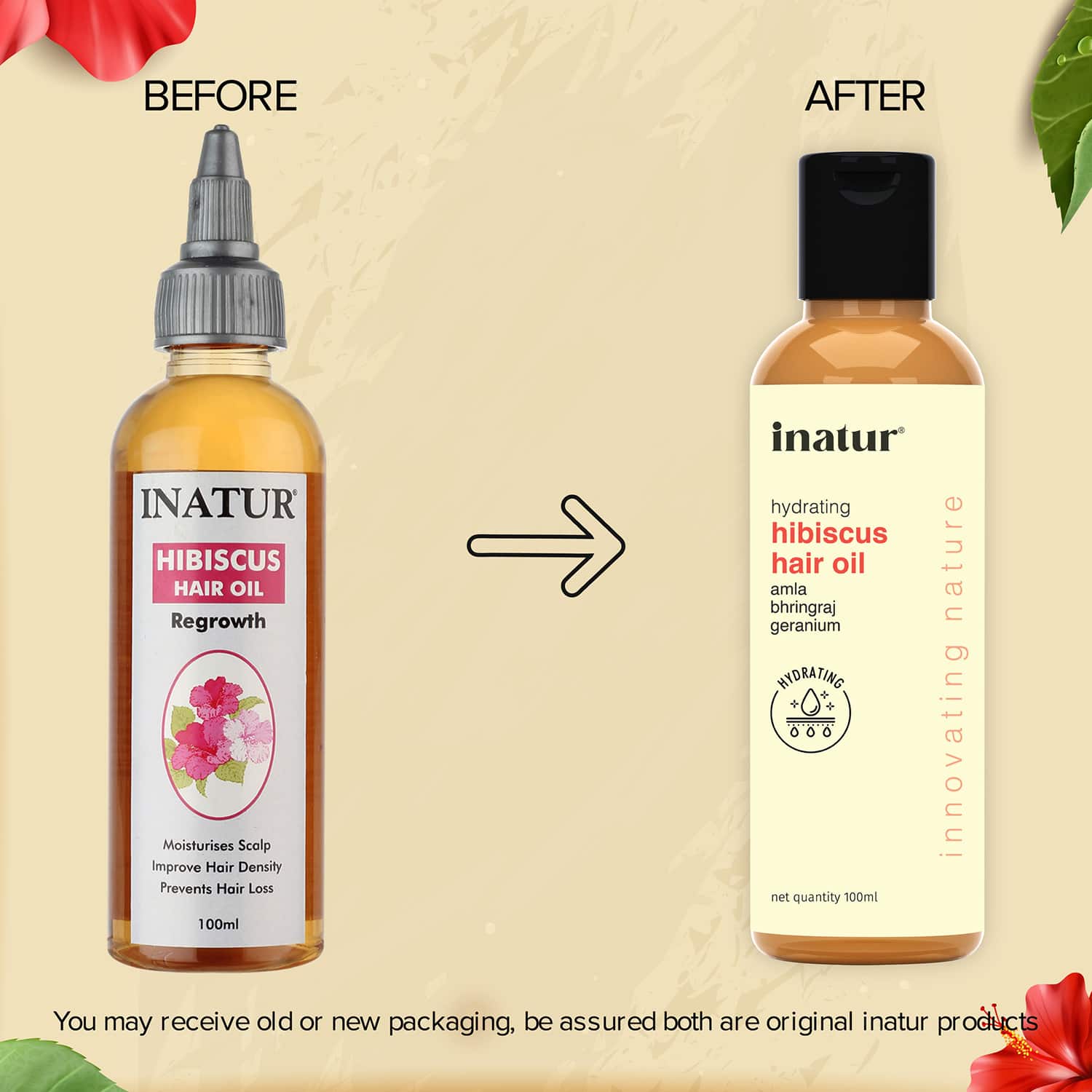 Get fuller hair with the Inatur Hibiscus Re Growth Hair Oil (100ml). This hair growth oil is enriched with potent botanicals that revitalize your strands with essential nutrients to promote new follicular growth, strengthen the locks, and reduce hair fall for denser tresses. In addition, this anti-greying hair oil helps minimize color fading by increasing hair melanin content for gorgeous, natural hair color.Key Features & Benefits:Provides essential nutrients for improved hair growthIncreases melanin content to delay hair greyingMakes hair strong and healthy to reduce hair fallVegan and cruelty-free without synthetic fragrance for reliable useAll Ingredients:Sesame Seed Oil, Hibiscus Oil, Almond Oil, Geranium Oil, Bhringraj (Eclipta Alba), Fenugreek ( Trigonella Foenum -Gracum), Fennel ( Foeniculum Vulgare), Amla (Emblica Officinalis)How to Use:Dispense 3 or 4 drops of oil in your hand, then warm it between your palms. Apply to clean, damp hair. Gently comb through with your fingers to spread evenly.About the Brand:Inatur was founded in 2007 by Pooja Nagdev. Inspired by the wisdom of Ayurveda and Aromatherapy, the brand develops innovative, safe, and eco-friendly skincare products. Inatur uses organic, plant-derived ingredients and also ensures all the products are dermatologically tested and free from paraben and sulfate for safe use. Their range of products includes face serum, face scrub, day cream, moisturizer, face mask, and much more. At the 7th edition of the Brand and Leadership Conclave, Inatur was nominated and recognized as one of India's Most Admired Brand. In addition, this brand's offerings are vegan, cruelty-free, and proudly made in India.Check out more Inatur Hair Oil options here, or browse through tokocart's full range of Hair Oil from top global brands.You can also explore other products from the world of Inatur here on tokocart.