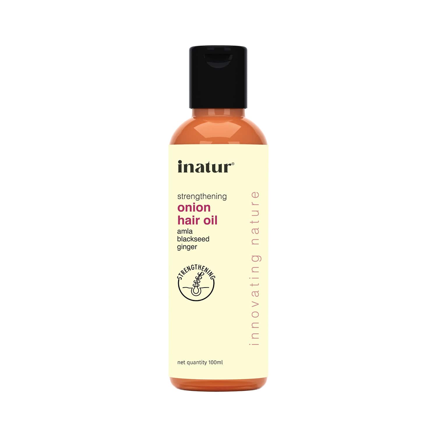 Get tangle-free lustrous hair with the Inatur Onion Hair Oil (100ml). This natural hair oil minimizes greying and conditions and moisturizes dry, frizzy locks for vibrant, shiny, and nourished hair that you would love to flaunt. In addition, this anti-hair fall oil fights all scalp infections and boosts blood circulation to prevent hair loss and promote hair growth.Key Features & Benefits:Boosts blood circulation to the follicles to promote hair growthRemoves scalp bacterial infections to reduce hair fall and fight dandruffMinimizes premature greying for healthy, vibrant locksConditions dry and frizzy strands to make them look lustrousVegan and cruelty-free for reliable useAll Ingredients:Amla, Blackseed, Ginger, Onion, Lemon & Manjistha.How to Use:Dispense 3 or 4 drops of oil in your hand, then warm it between your palms. Apply to clean, damp hair. Gently comb through with your fingers to spread evenly.About the Brand:Inatur was founded in 2007 by Pooja Nagdev. Inspired by the wisdom of Ayurveda and Aromatherapy, the brand develops innovative, safe, and eco-friendly skincare products. Inatur uses organic, plant-derived ingredients and also ensures all the products are dermatologically tested and free from paraben and sulfate for safe use. Their range of products includes face serum, face scrub, day cream, moisturizer, face mask, and much more. At the 7th edition of the Brand and Leadership Conclave, Inatur was nominated and recognized as one of India's Most Admired Brand. In addition, this brand's offerings are vegan, cruelty-free, and proudly made in India.Check out more Inatur Hair Oil options here, or browse through tokocart's full range of Hair Oil from top global brands.You can also explore other products from the world of Inatur here on tokocart.