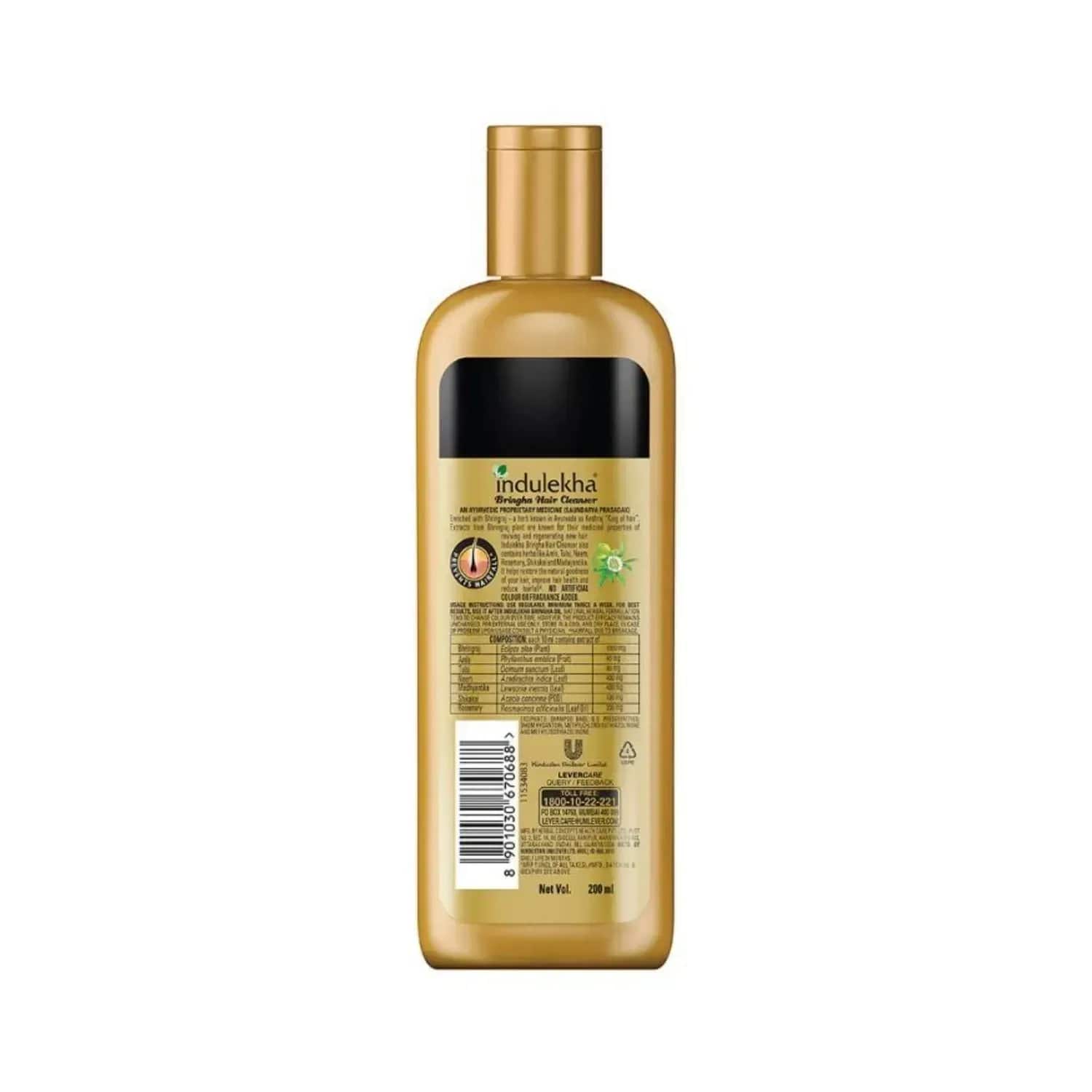 Improve your hair health with the Indulekha Bringha Shampoo - (200ml). This ayurvedic shampoo is infused with nine Bhringraj plant extracts, six herbs and essential oils to reduce hairfall. The herbal shampoo contains neem, shikakai, tulsi, and amla to increase blood circulation to the scalp and promote thicker, stronger hair.Key Features & Benefits:Enriched with nine Bhringraj plant extracts, six herbs, and essential oils to minimise hairfallContains neem, shikakai, tulsi, and amla to promote blood circulation to the scalp and fortify hair folliclesFormulated with herbal ingredients and contains 100% natural colour and fragranceFree of parabens, sulfates, silicones, synthetic dyes and synthetic perfume for safe useKey Ingredients:Bhringraj, amla, vitamin C, vatadha, and svetakutaja: Promote hair growth, reduce hair fall, increase blood circulation, nourish, and protect the scalpHow to Use:Wet your hair and apply shampoo to your scalp. Work the shampoo into your hair and massage it in for 30 seconds. Rinse thoroughly with warm water.All Ingredients:Bhringraj, Amalaki, Tulsi, Neem, Henna, Shikakai, Rosemary OilAbout the Brand:Founded in 2009, Indulekha is an Indian hair care brand headed by Hindustan Unilever Limited. The brand uses the wisdom of ancient Ayurveda practices to solve hair-related problems. Their products include hair oils, serums, cleanser, lepams, and many more. The brand develops hair care products with hand-picked herbs that are safe and effective.Check out more Indulekha Shampoo options here, or browse through tokocart's full range of Shampoo from top global brands.You can also explore other products from the world of Indulekha here on tokocart.