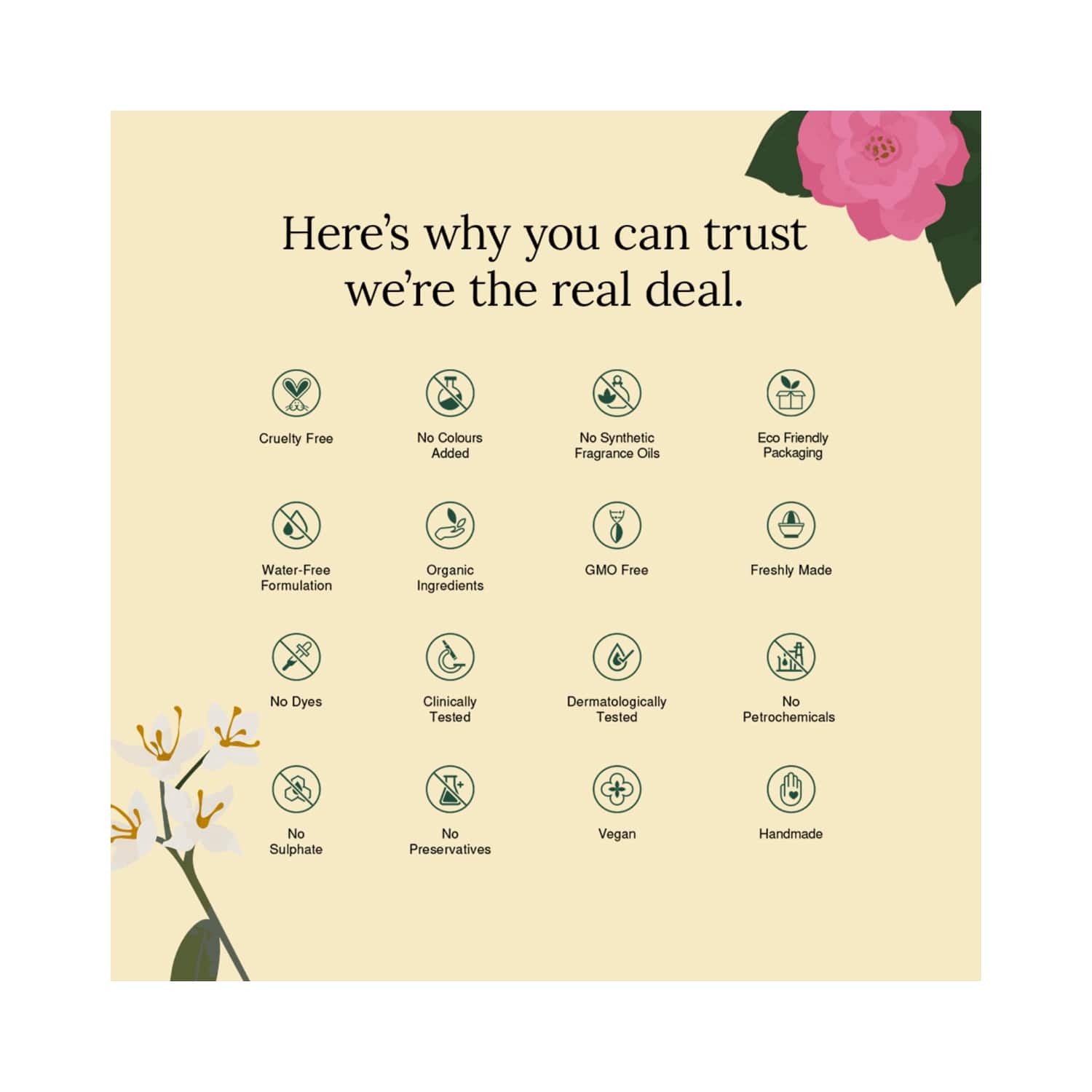 Add an extra dose of freshness with the Juicy Chemistry Damask Rose and Jasmine Dusting Powder (35g). This talc-free powder is made of pure floral powders, gentle clays, and root powders that absorb oil and sweat for smoother skin. Plus, this Juicy Chemistry powder has a floral scent that leaves your skin smelling fresh all day long.Key Features & Benefits:Uses pure floral powders, gentle clays, and root powders to create a beautiful floral fragranceQuickly absorbs sweat and oil from skinKeeps skin cool and dryTalc-free formula ensures smooth skinKey Ingredients:Rose oil, jasmine oil, and kaolin clay: Nourish and cleanse skinAll Ingredients:Damask Rose, Jasmine Essential Oil, Australian Sandalwood Essential Oil, Arrowroot Powder, Tapioca Starch, Organic Kaolin Clay, Organic Rice FlourHow to Use:Cleanse and pat dry your skin. Then, sprinkle the powder on the area of your choice and spread it with your hands or a sponge for better absorption. Use every day for the best results.About the Brand:Juicy Chemistry is an Indian organic cosmetics brand certified by ECOCERT. It was launched in 2014 by Megha Desai Asher and Pritesh Asherto to develop effective skincare products based on nature's goodness and science. Juicy Chemistry is committed to helping everyone find answers to their skin problems, and they believe that the answer lies in nature. They diligently put time and effort into understanding every ingredient's chemical and physical properties.Check out more Juicy Chemistry Talc options here, or browse through tokocart's full range of Talc from top global brands.You can also explore other products from the world of Juicy Chemistry here on tokocart.
