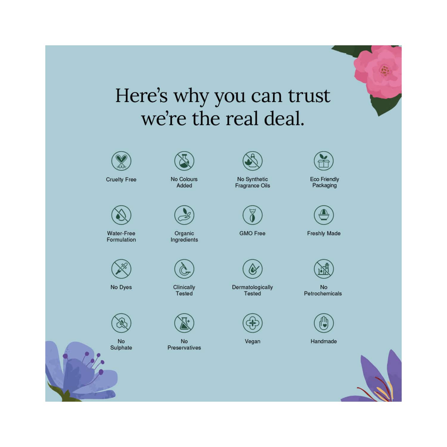 Leave your skin soft and smooth with the Juicy Chemistry Damask Rose Geranium & Saffron Soap (100g). This gentle cleansing and moisturizing soap leave your skin feeling soft, clean, and hydrated. Made with natural ingredients, it is suitable for all skin types. Plus, this Juicy Chemistry soap soothes the skin as well as helps improve complexion.Key Features & Benefits:Made from natural ingredients for safe useProvides gentle cleansing to remove impuritiesHelps to moisturize, tone, and refresh your skinSuitable for normal to combination skin typesKey Ingredients:Rose, geranium, and saffron: Nourish and brighten skinAll Ingredients:Aqua, Sodium Olivate, Sodium Cocoate, Sodium Shea Butterate, Sodium Mango Sedate, Sodium Castorate, Pelargonium Graveolens (Geranium) Flower Oil, Kaolinite, Rosa Damascena (Rose) Flower Powder, Crocus Sativus (Saffron) Petals.How to Use:Dampen your skin. Then use water to wet the soap and rub it gently over your body. Shortly after, rinse it off with water and towel dry your body to get fresh and scented skin.About the Brand:Juicy Chemistry is an Indian organic cosmetics brand certified by ECOCERT. It was launched in 2014 by Megha Desai Asher and Pritesh Asherto to develop effective skincare products based on nature's goodness and science. Juicy Chemistry is committed to helping everyone find answers to their skin problems, and they believe that the answer lies in nature. They diligently put time and effort into understanding every ingredient's chemical and physical properties.Check out more Juicy Chemistry Soaps options here, or browse through tokocart's full range of Soaps from top global brands.You can also explore other products from the world of Juicy Chemistry here on tokocart.