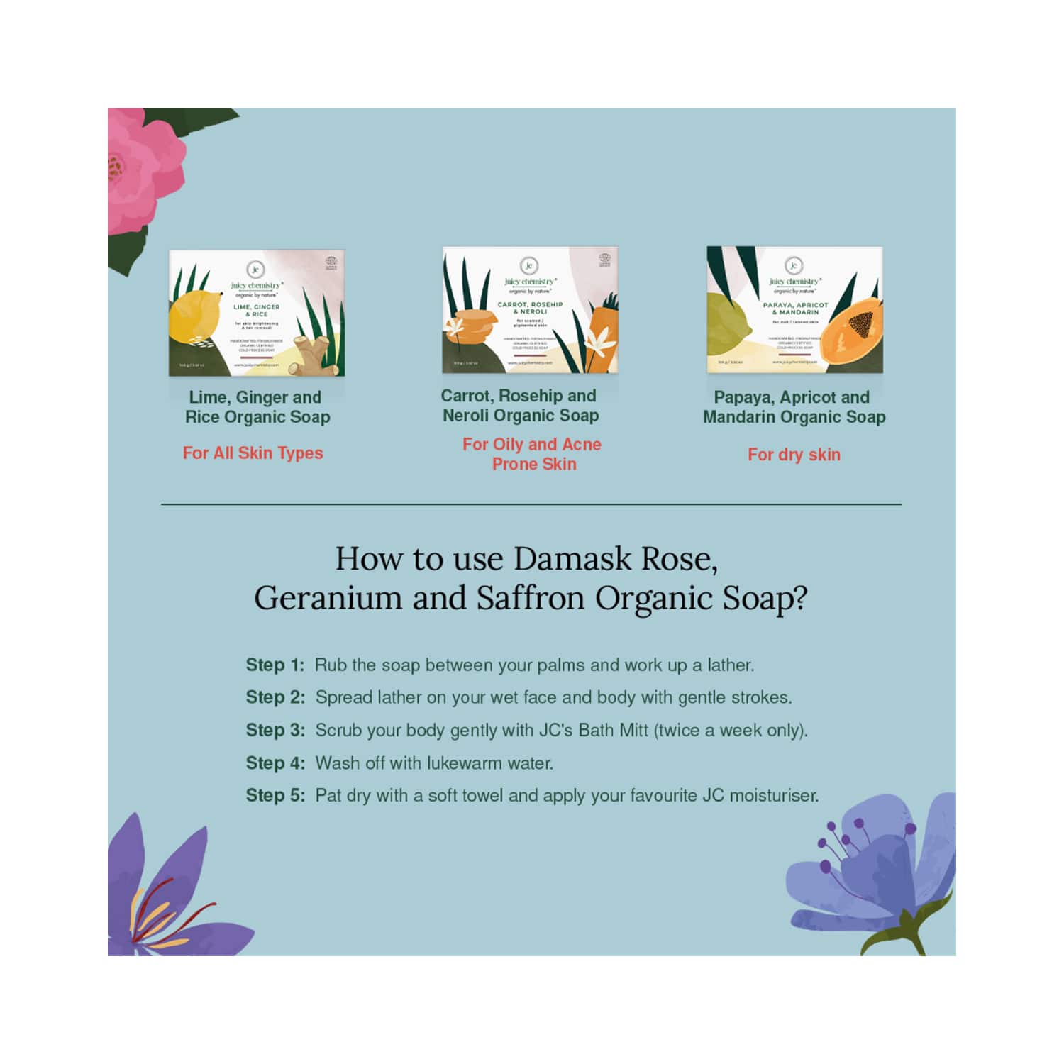 Juicy Chemistry Damask Rose Geranium & Saffron Soap (100g)