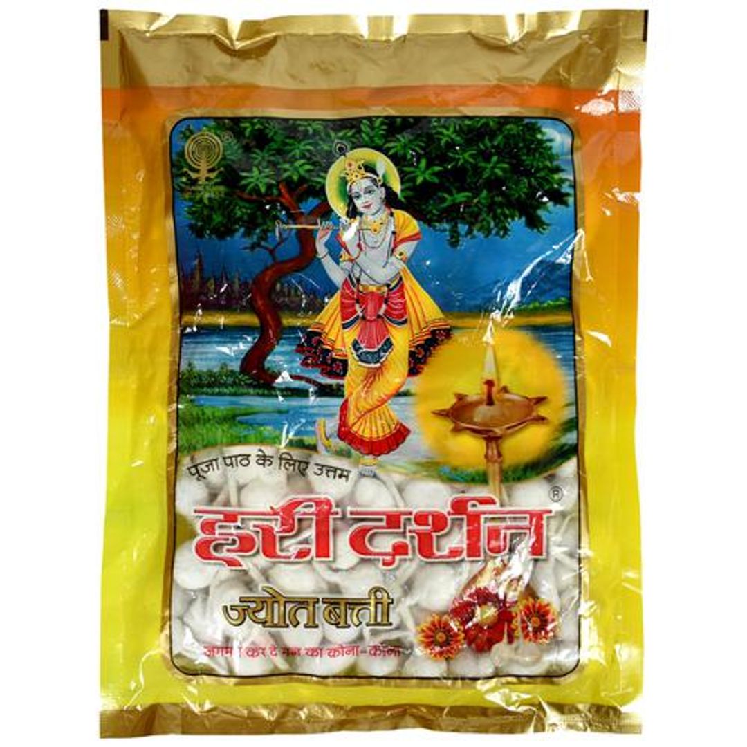 Hari Darshan Jyot Batti is cotton batti that are used in traditional oil lamps. These jyot batti are made from soft, pure organic cotton. They are handmade and double twisted. Cotton Jyot Batti is used worldwide to light charges / oil lamps for meditation and spiritual prayers and add elegance to the home decor. Its smoke will purify the atmosphere and bring positivity to your mind.