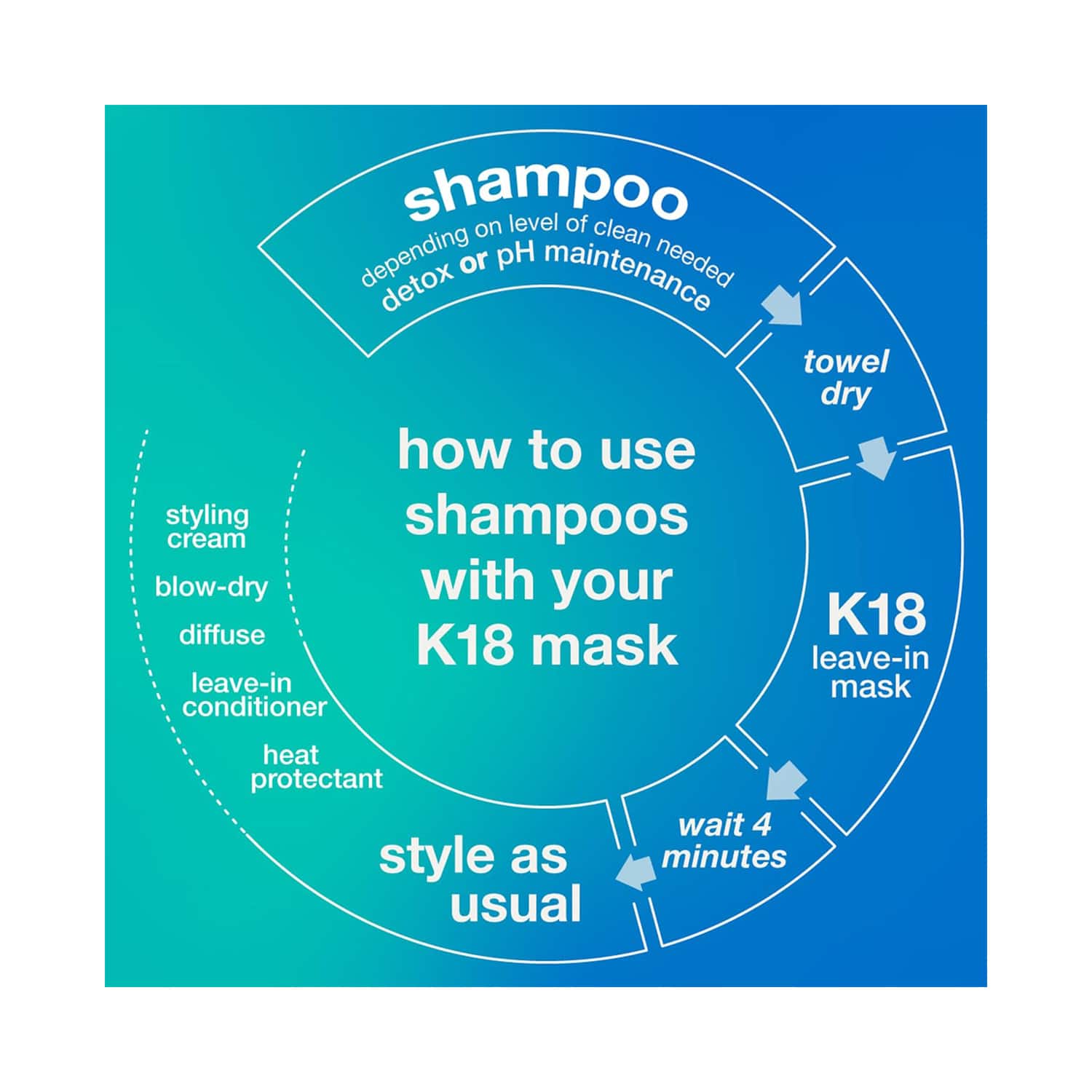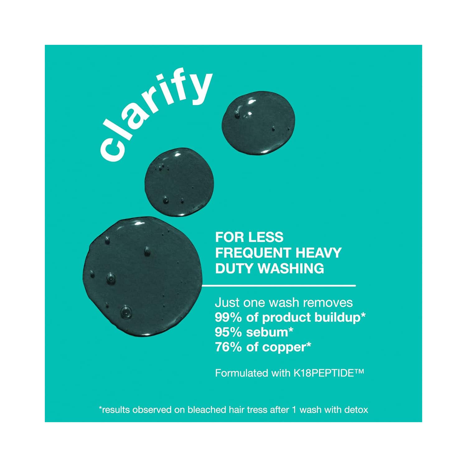 Key Features & Benefits:Infused with K18peptide, a unique formulation of the brand to revive dull, damaged hair with protein building complexContains scalp cleansing salicylic acid and activated charcoal to remove excess oil, product buildup, and water mineral deposit for clean hair and scalppH-balancing, non-stripping formula moisturizes the hair with glycerin and panthenolColor-safe shampoo that cleanses the hair and scalp for maximum damage-repair with a single wash