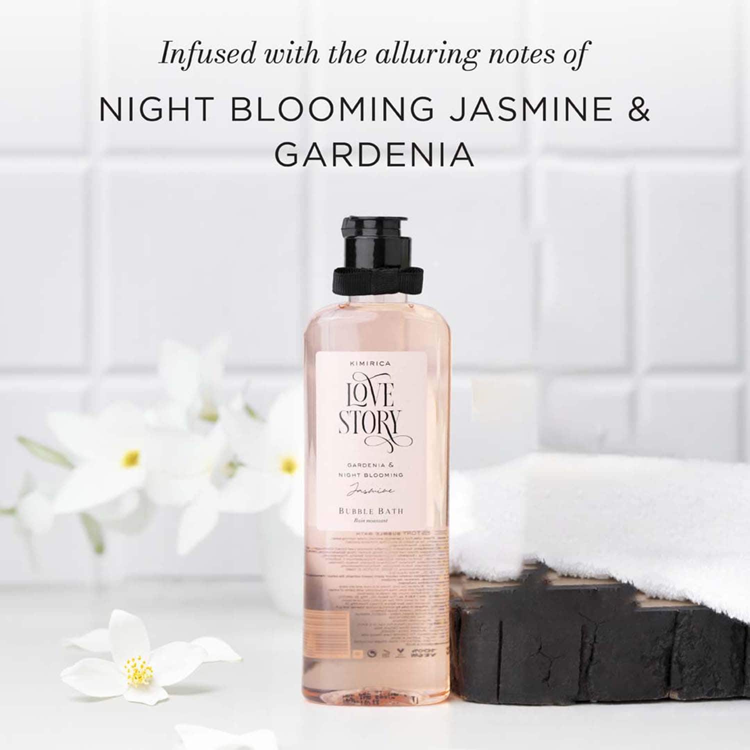 Enjoy with Kimirica Love Story Bubble Bath Bottle (290ml) a sensory experience that is enhanced by the seductive tones of gardenia and night blooming jasmine. After every wash, your skin will feel soft, supple, and nourished because to the goodness of Ginkgo Biloba, White Tea Extract, Aloe Vera, and Vitamin E.Key Features & Benefits:Helps to rejuvenate and detoxify the skinHow to Use:Pour a generous amount of Kimirica Love Story Bubble Bath under running water until the bath is as bubbly as you’d like. Immerse yourself, sink in and relax. Rinse thoroughly.All Ingredients:Ginkgo Biloba & White Tea Extract: Anti-inflammatory and antibacterial properties of Ginkgo Biloba help enhance skin health. Antioxidant properties of White Tea Extract promote healthy & youthful skin. Together they provide synergistic effects that help improve skin elasticity.Aloe Vera: Helps in healing and preventing dryness while keeping your skin healthy and soft.Vitamin E: With rich moisturizing and anti oxidizing properties, it deeply hydrates and moisturizes the skin making it soft and supple.Pro-Vitamin B5: Helps retain moisture and improves skin softness and elasticity.About the Brand:Co-founded by sisters Kimi and Rica in 2012, Kimirica is a beauty and skincare brand from India. It offers a wide variety of products, from hair care and face care to gift sets. The brand aims to promote the message of self-care and self-love through its affordable offerings and partnership with celebrities like Kiara Advani. Each product of Kimirica uses natural ingredients or plant actives and is developed by experts after thorough research and quality checks to ensure effective and safe use.Check out more Kimirica Body Wash & Shower Gel options here, or browse through tokocart's full range of Body Wash & Shower Gel from top global brands.You can also explore other products from the world of Kimirica here on tokocart.